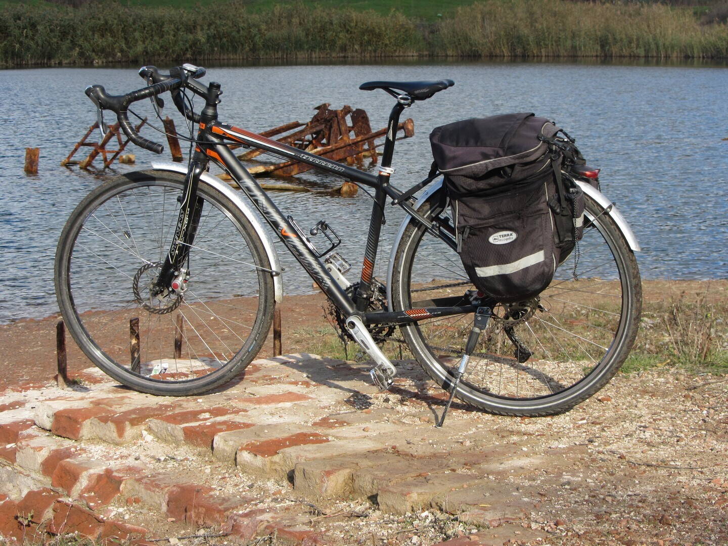 Но лучше всего по тем-же плохим дорогам едет моя хромолевая шоссейная Bianchi – тоненькая вилка очень хорошо сглаживает неровности. Но делать из неё турист я не стал. Да и толстые колёса туда еле влезают.