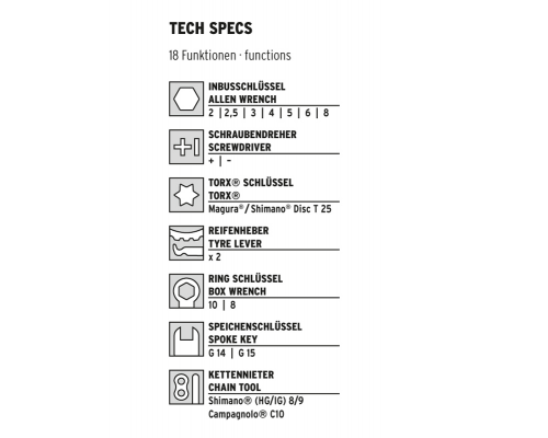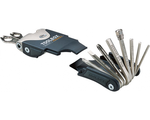Мультитул SKS. Взял уже такой что бы всё было:) Освободил место в рюкзаке и облегчил. Выложил маленькую отвёртку с набором бит, отдельные 6-гранники и торксы, отдельную выжимку цепи и спицной ключ.