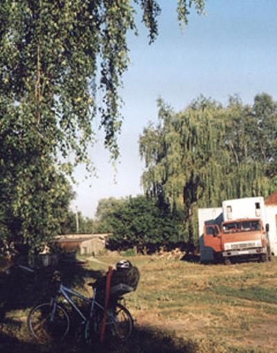 Потом мы поехали в город, я немного отстал, а когда поравнялся с Сергеем, увидел, как он навязывает на руль ленточку. Увиденное произвело впечатление, и я открыл счёт падениям. На площади была толпа митингующих и просто зевак, накачивали шар, видимо, хотели лететь, но ветер помешал. Там Сергей встретил знакомого и попросил сфотографировать нас на фоне «майдана». Тогда я подумал как хорошо мне – не надо вешать ленточки, на заводе покрасили, так как надо. Фотография есть, но «ФЭД» не автофокусный и акцент не там, а может так и задумывалось (и все же это наша история, как ни крути).