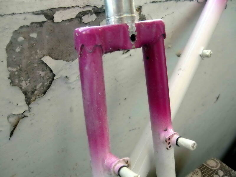 Купил я прошлым летом велосипед польского производства МТБ…ничем от говеных китайцев не отличался, обошелся мне в 200 дол. Купил для езды на работу потому что маршрутки заколебали в корень,да и люблю я это дело. Покатался я на нем пару месяцев поапгрейдил чутка…понял что не мое, продал и купил сити-байк. Неплох был, итальянец (марку уже не припомню).И тут както я заехал для сервиса, в веломастерскую по совету продавца предыдущего вела.Оказалось что это хорошая мастерская, толковые старшие дядьки, берут недорого делают хорошо.Пару раз я туда приезжал,привозил друзей.И все мне глаза мусолили шоссейные велосипеды которых там просто немерено стояло.Долго решался,продал сити,и купил шоссейник там,отвратительной раскраски но практически новый,голландского производства или немецкого 1998 года.Ничем он не блестал,стальная рама,алюминиевые двойные обода,кантилеверы,шимано сис…в общем ничего особенного но все в отличном состоянии.Сразу полюбил его-не слазил с него весь сезон-на работу с работы,по выходным только на нем.Ну вот сезон подошел к концу,я замотался с рабочими делами,меняя работу.Обстоятельства вынудили даже поставить его на продажу на этом же форуме,за смешные деньги,дешевле убитых ХВЗ.Но покупатель не нашелся,я вернулся в город с работы,и понял что скоро снова сезон…Вел есть,но,его раскраска меня ну очень уж смущала-белый с розовым напылением-не по мужски както))Подумывал о том чтобы просто перекрсить-но моя болезнь кастомайзингом произошедшая еще от увлечения мото техникой все недавала мне покоя,понеслась…Я интерисуюсь 20-50 годами,ретро,мото и авто техникой и историей мафии.Все эти факторы сложылись в желание преобразить безобразный розовый велосипед в чтото строгое и стилизированое под ту эпоху.Начал шустрить инет,рассматривая детально винтажные велосипеды,ретро шоссеры и тому подобное стал вырисовываться силует.В тот же вечер (пару дней назад) разобрал к чертям весь велосипед парой пассатижей, отверткой и одним шестигранником, не удалось снять только руль и педали. Дома почти нету инструмента все перекочевало на сервис где когда то работал.
