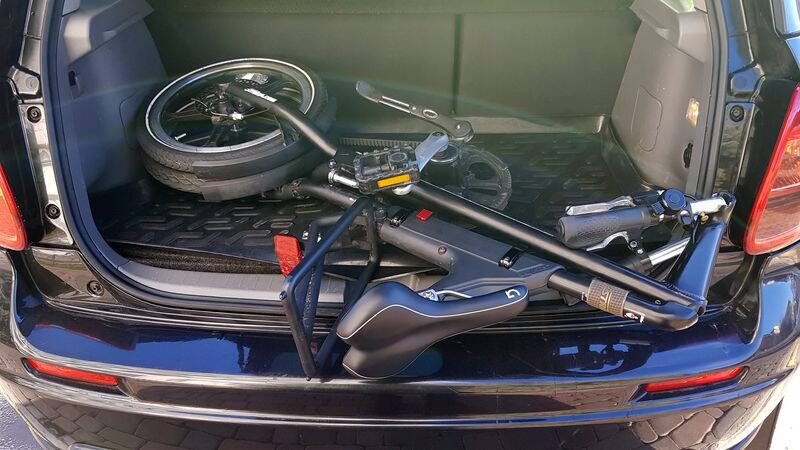- длинный в сложенном состоянии. 114см! В багажник моего авто еле-еле влез по-диагонали. Бромптон более квадратный и влазит без проблем.