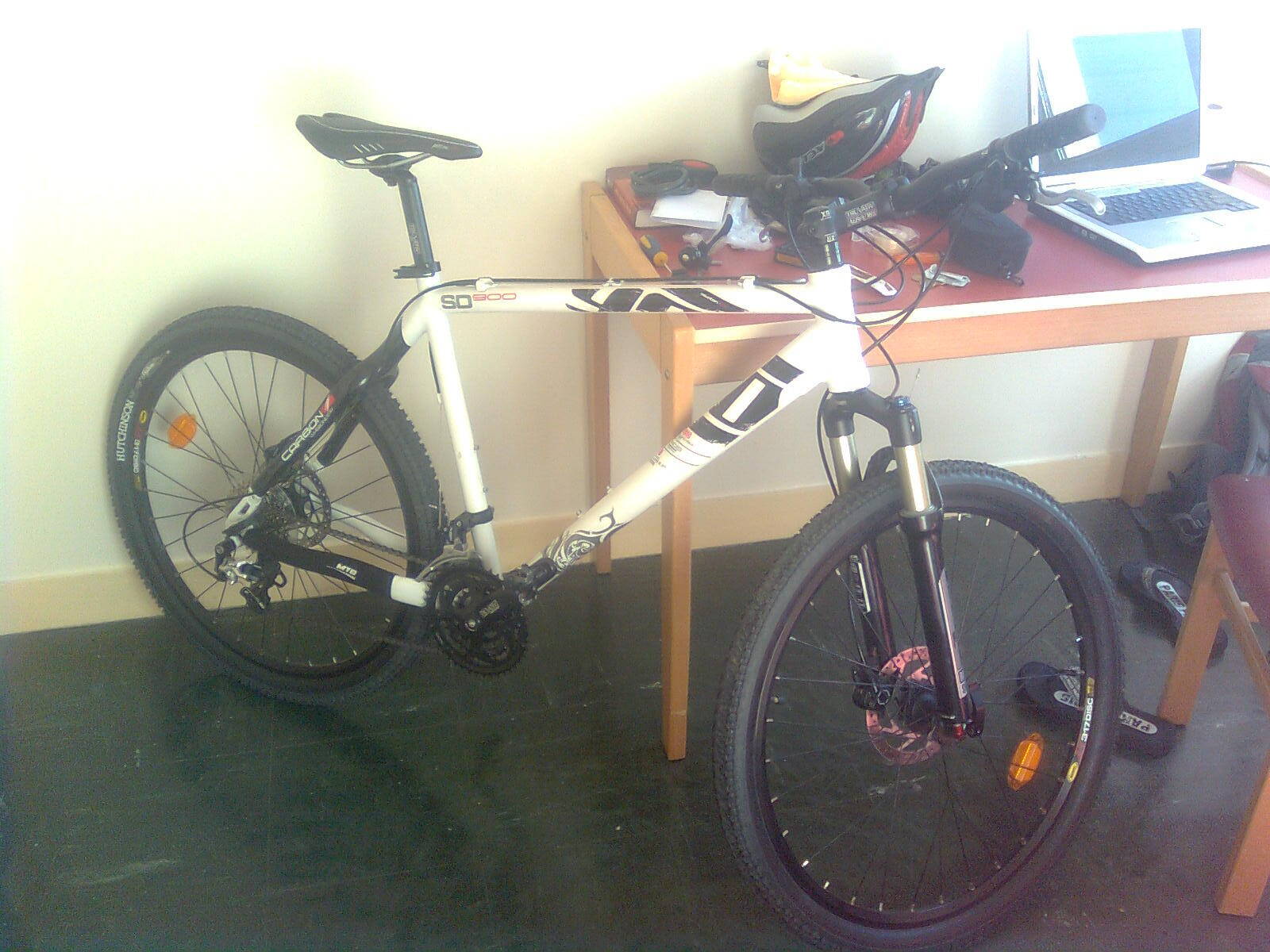 1. Рама - хз кто произвел, называется вроде topbike sd 900, сама алюминиевая, а задние перья карбоновые. Сколько весит к сожалению не знаю... Геометрия рамы мне не привычна немного - она короткая, поэтому была взята 19 ростовки вместо обыденной для меня 17. Обратите также внимание (видно на фото), что швы на раме аккуратно заглажены - как это делают на Cannondaleи некоторых Scott =)