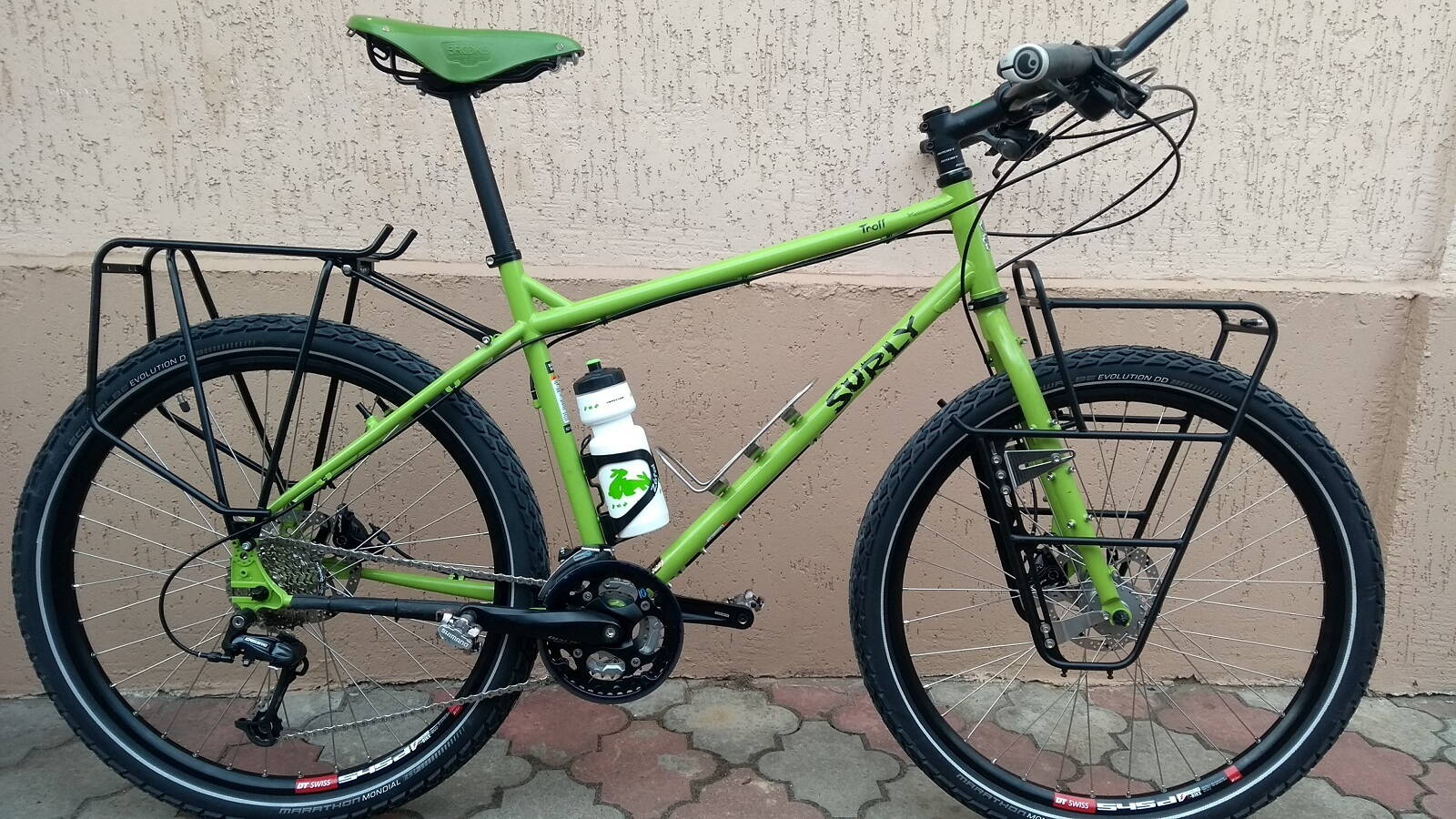 Вначале хотел собрать на 28 колесах surly lht или disk trucker, но для не высоких рамы идут только на 26 колесах, а потом увидел зеленого тролля и решил собрать off road туринг на базе рамы surly troll