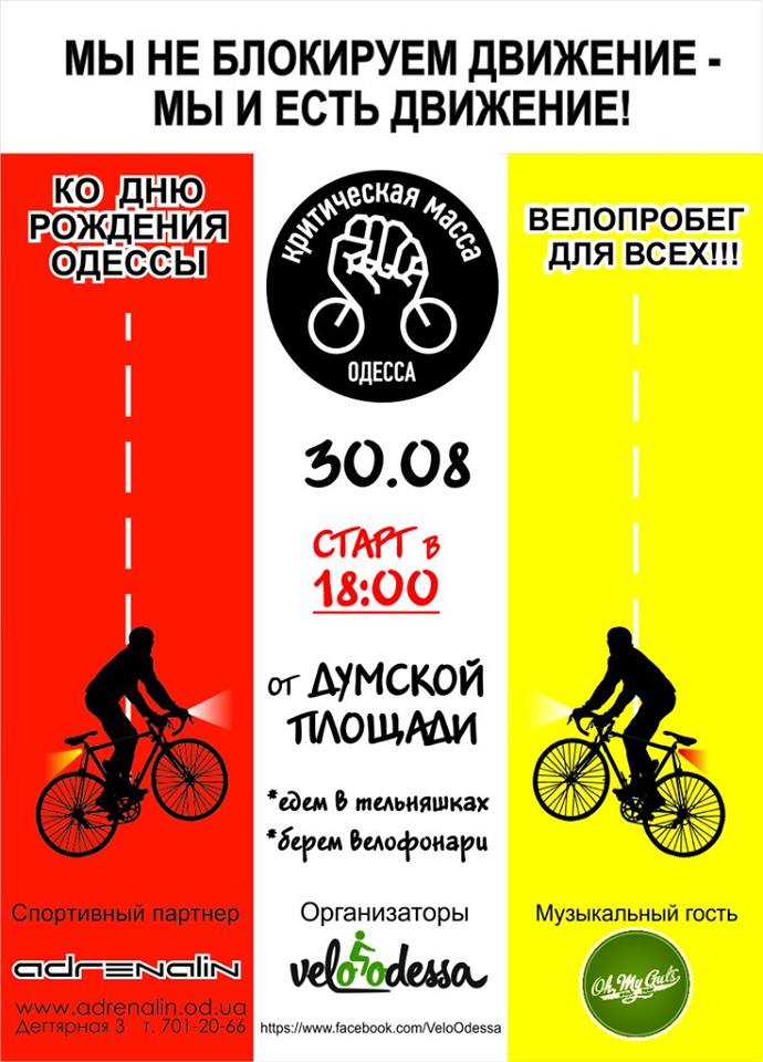 30 августа в Одессе состоится уже традиционный велопробег "Критическая масса"!