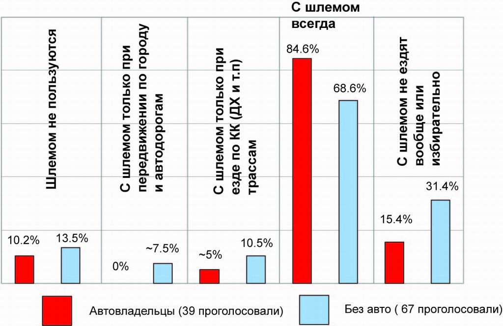 3.) Ну, неким подтверждением выше сказанного есть почти двукратное преобладание голосов "чисто велосипедистов" над "автовладельцами" при суммировании разделов "без шлема или избирательно".