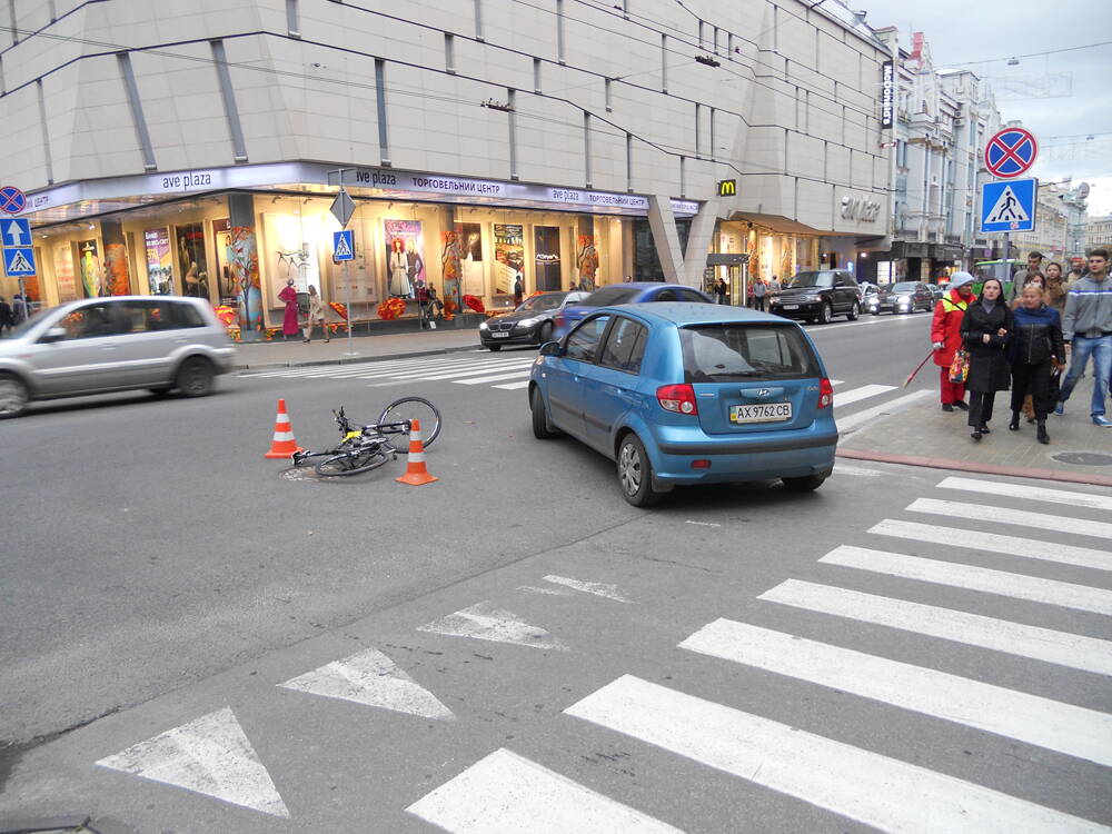 Теперь о том, что случилось: ехал по ул. Сумской вниз и на перекрестке возле театра им Шевченко от стоявшей на второстепенной машины хундай получаю таран в бок бампером справа. Т.к после бокового удара вел резко косится влево - успел вырваться из контактов и выставить левую ногу, чтоб не упасть и видимо как-то не сильно удачно. Реакции водителя нет. Оставляю вел на месте столкновения и иду к водителю - за рулем женщина. Вместо каких либо извинений начинаются непонятно куда звонки, и тыканье деньгами, на что я сказал что мне ее деньги не нужны, а после дтп можно было бы и просто поинтересовааться о моем состоянии и извиниться а не отсиживаться в машине. Раз ситуация была не решаема - вызвал ГАИ, пока ожидали - машина сначала сдала назад за пешеходный переход, а потом и вовсе собралась уехать повернув на сумскую, где и была остановлена мной после открытия двери водителя и преграждения дороги свидетелями ДТП. На этом бы все и закончилось, но нет - приехал муж женщины, находившейся за рулем хундай. Муж этой барышни оказался не адекватным настолько, насколько я даже представить не мог. т.к. на тот момент он не знал о существовании свидетелей, которые видели все с самого начала, он начал разрабатывать свою схему ДТП и версию случившегося. Обвинил меня в автоподставах и в том, что никакого ДТП не было, а я упал сам по себе. На это я ему ответил, что раз общаться нормально не может - будем через ДПС общаться. То ли у мужика с нервами не все в порядке, то ли еще чего, но он начал рассказывать что я бил его жену и полез в драку - если б я не увернулся назад - то получил бы в лицо по полной. Пришлось его отогнать от себя т.к. не известно что от него в таком состоянии можно было ожидать. Особо попасть - никуда не попал но мужика отогнал. Мужик забежал за машину и оттуда вещал что поедет побои снимать, после чего куда-то уехал. Пока стоял - почувствовал колено. Через время вернулся мужи уже с ссадиной под левым глазом и позже, наконец, подъехала ДПС. ДПС вызвала скорую и меня забрали в 4-ку, где сделали рентген, алкотест, выписали справку и отпустили. Продолжение следует уже в центральном отделении ДПС и, наверное, в суде.