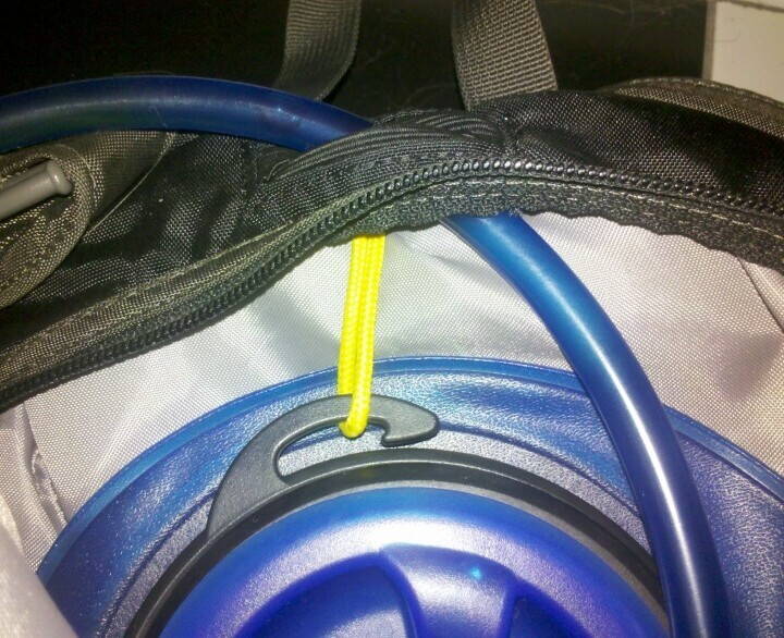 Для того чтобы гидропак не съезжал вниз в кэмелбековском рюкзаке предусмотрена специальная петелька. Что-то подобное можно пришить к любому рюкзаку, главное найти способ гидропак зацепить.