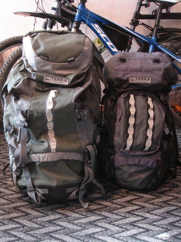 Есть как 65 так и 80 литровые терровские рюкзаки. Жена ходит с 65 куда влазит все походные вещи + еда но без палатки. В мою 80-ку влазит все то же + палатка, но в обоих случаях каремат висит на задней стенке. Внутрь его можно засунуть только разве что в теплом летнем походе.