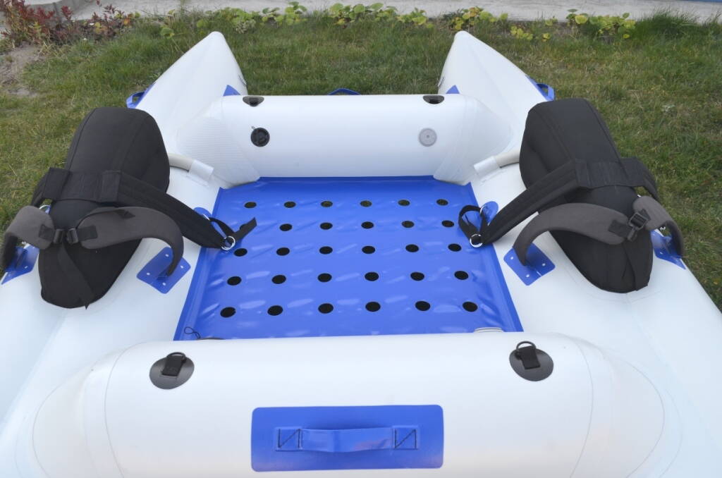 Катамаран-двойка с коленной посадкой малыш и так весит около 20 кг, но если необходимо его облегчить для авиаперелетов, из сидушек можно вынуть внутрянки и отшнуровать палубу.