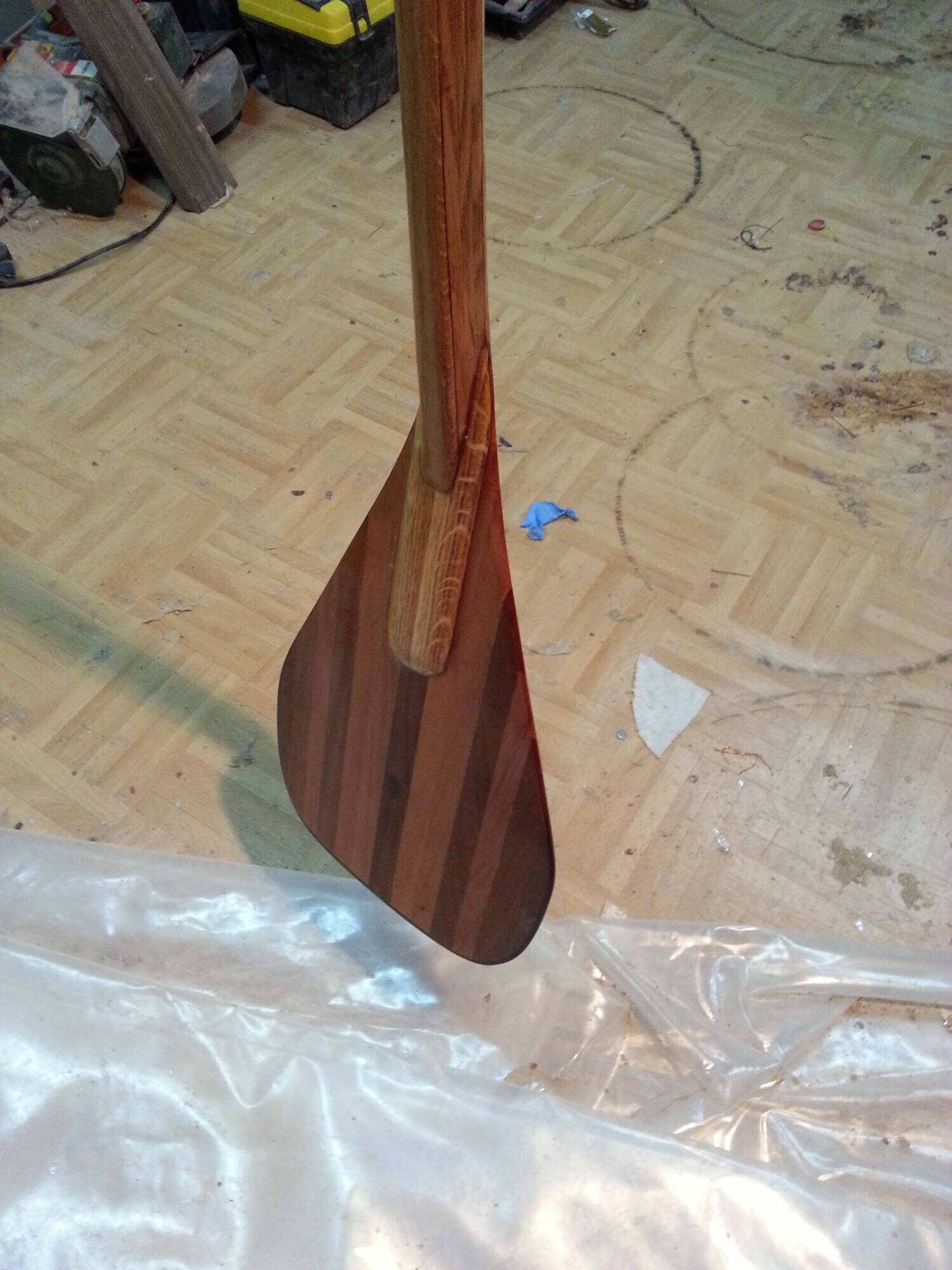 Кант на лопатке: эпоксидная смола с наполнителем из древесной муки, кабасила и рубленного волокна, для защиты дерева от ударов и сколов.