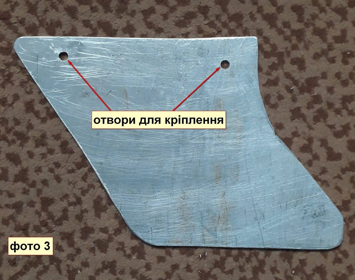 Тож вирішив покращити конструкцію, збільшивши глибину, а відповідно і площу. Зробив це наступним чином: заготував дві пластини з алюмінієвого сплаву (фото 3). Глибина пластини 15,5 см, а площа однієї пластини 260 см2. У стандартному перу на кожному бортику просвердлив по два отвори для кріплення додаткових пластин (фото 4).