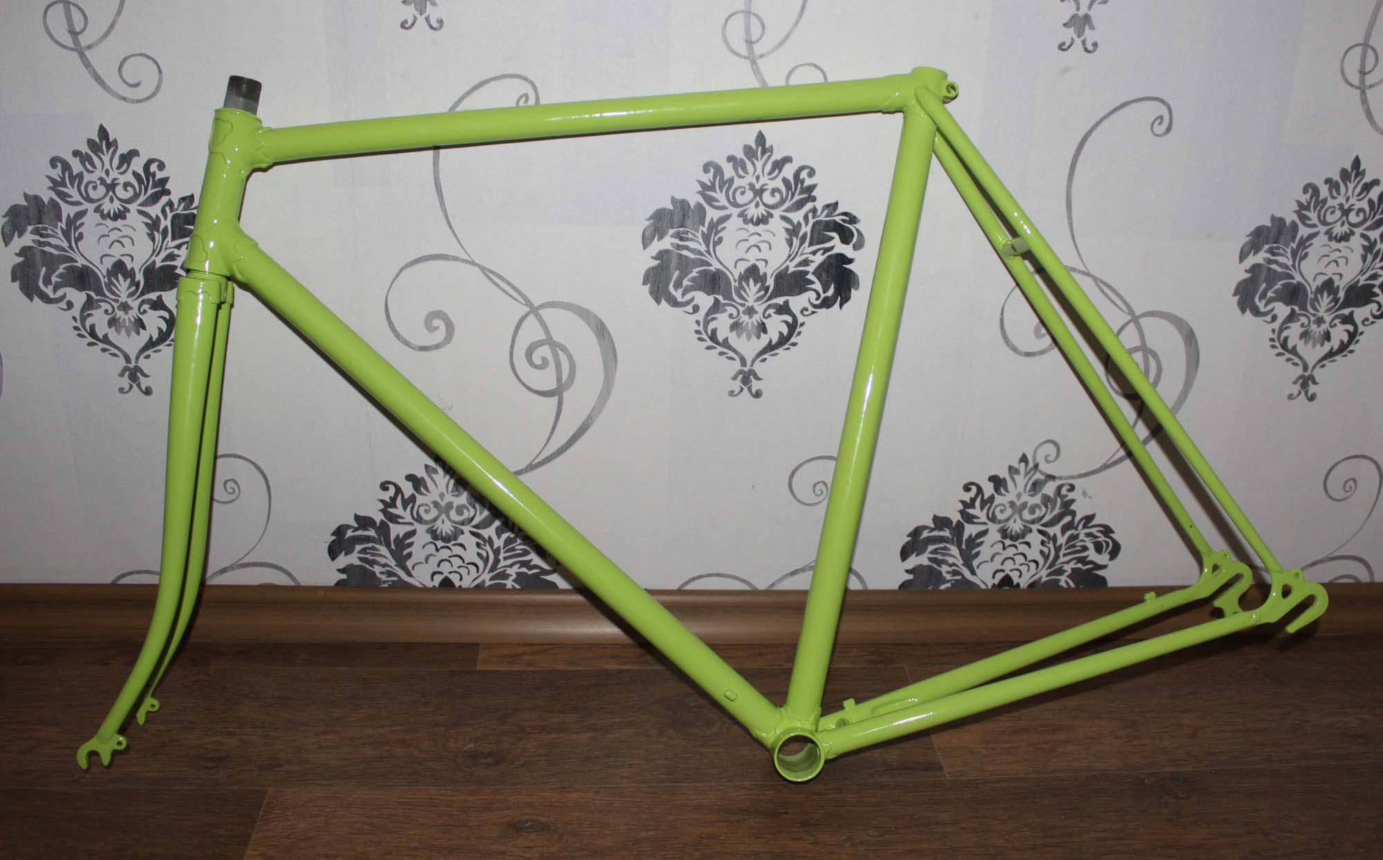 Понимаю что правильно собирать фикс на основе трековой рамы (это что бы сразу свести на НЕТ обсуждения типа *Старт Шоссе - это не тру*), может потом обзаведусь трековой рамой и всё переставлю на неё, а из этой сделаю крокодильчика (цвет вполне подходящий)