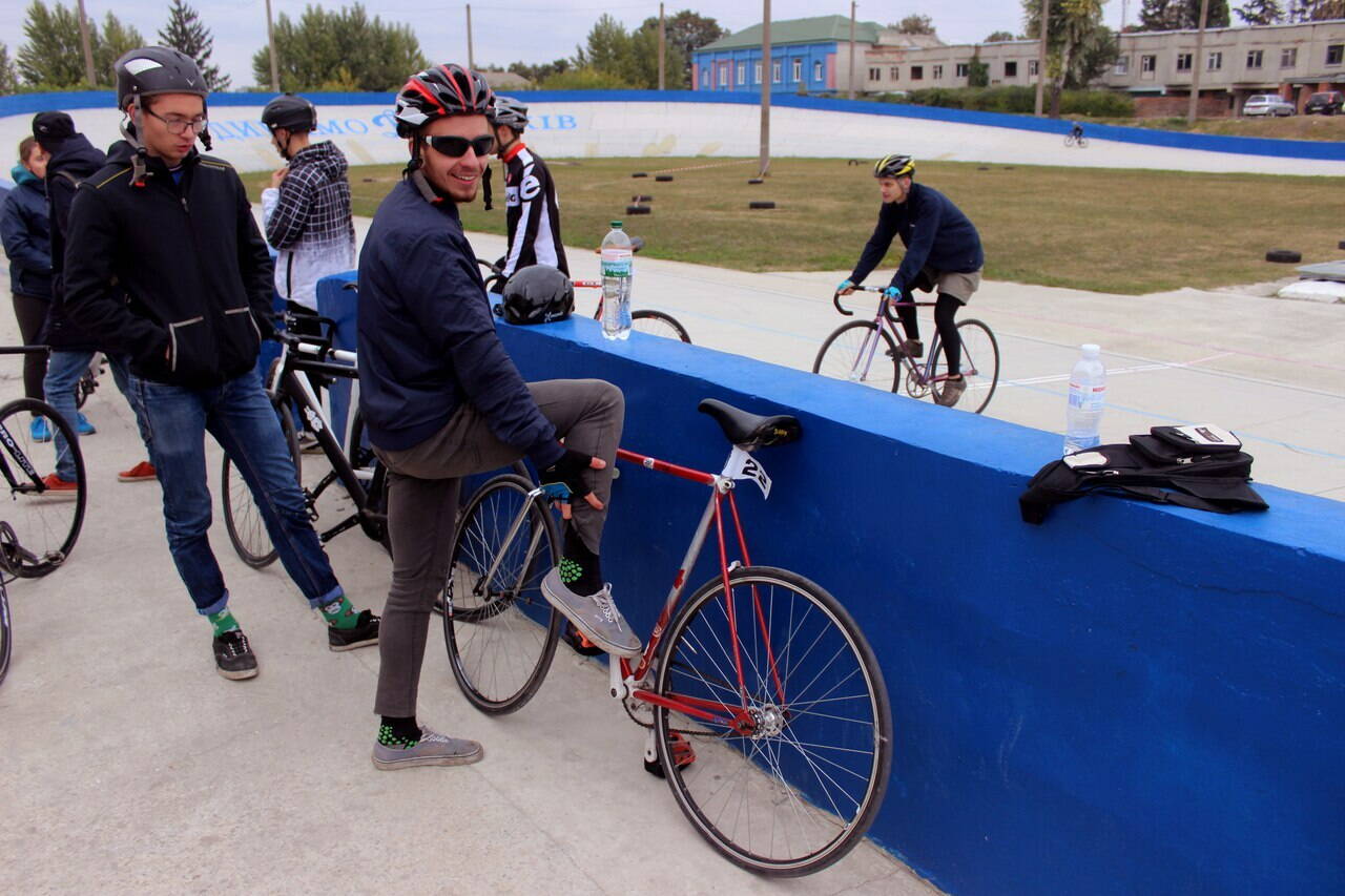 Выкладываю фотографии прошедшей в Харькове на велотреке ДИНАМО любительской гонки среди фиксиров ЖАРА 2017 прошедшей в конце сентября . Ребята ехали следующие дисциплины ... гит 200 метров сходу , гит 500 метров с места , кейрин , спринт , и групповая гонка с выбыванием . Ваш покорный слуга на этих соревнованиях выступал ... в качестве тренера / когда ребята ехали гит двухсотку , многие из них выехали на трек впервые , и нам с Сергеем Алексеевичем Тараскиным / воспитавшем немало трековиков / пришлось детально объяснять им где и как нужно разгоняться , держать правильную траекторию , коридор и тд. /... в качестве маршала гонки / на фото /.... в качестве разгоняющего в кейрине ... и участника в гонке на выбывание . Короче БЫЛО ВЕСЕЛО !!! ОГРОМНОЕ СПАСИБО ДИМОНУ , организатору соревнований !