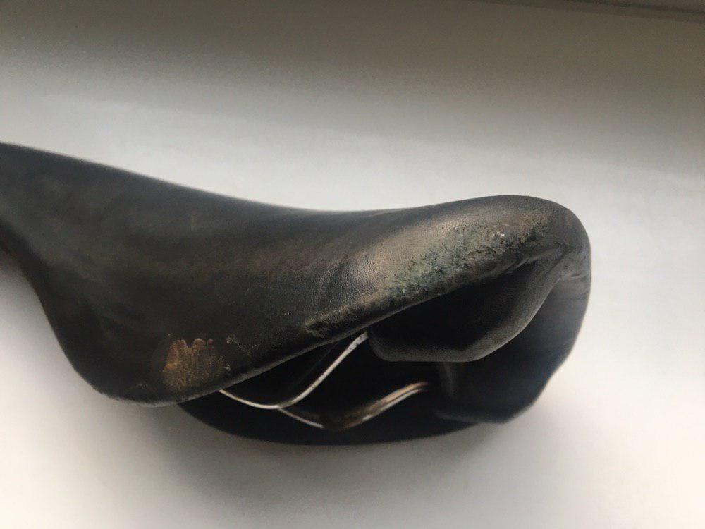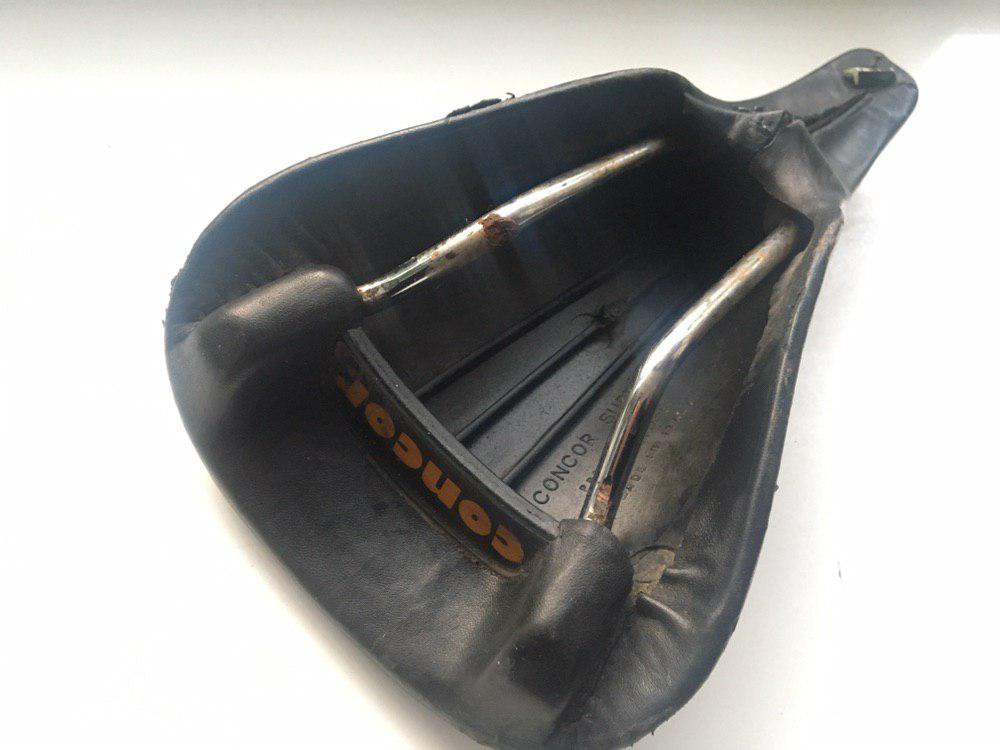 Седло Concor Profil, сзади есть небольшие потертости, отломана модная пластмаска снизу. В целом стояние нормальное.