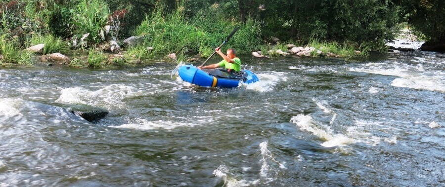 За счет этого же "плавника" на белой воде, отлично проходит бочки и сливы. Пороги до 3 кс, довольно легко. На ютубе судя по видео, спецы делают преодолевают и гораздо сложнее.
