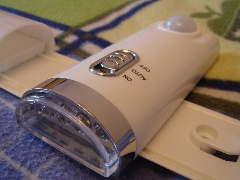 Я горевал и думал "ну почему не делают просто фонари с датчиком движения?". А тут, на днях был в "Эпицентре", проходил мимо лампочных витрин и подумал "а вдруг?" и, опа - вот он (даже они) - два фонарика с датчиком движения! Бюджетные (68 грн), наверняка не очень надёжные, слабенькие (4 обычных диода, зато едят мало), на неправильных батарейках, но... тем не менее - он есть, фонарик с датчиком движения.