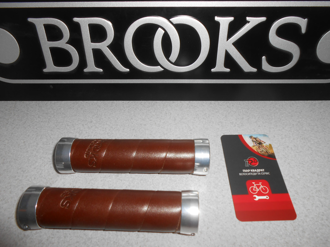 Нові гріпси BROOKS SLENDER GRIPS - є в кольорах brown і honey. Виготовлені в Італії. Вага - 133 грами (важив особисто). В набір входить бітка для прикручування гріпсів до керма. Комплектація в коробці.