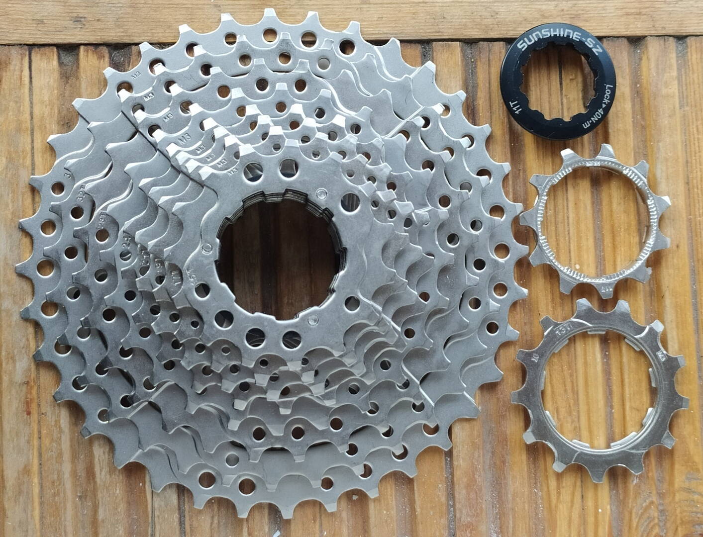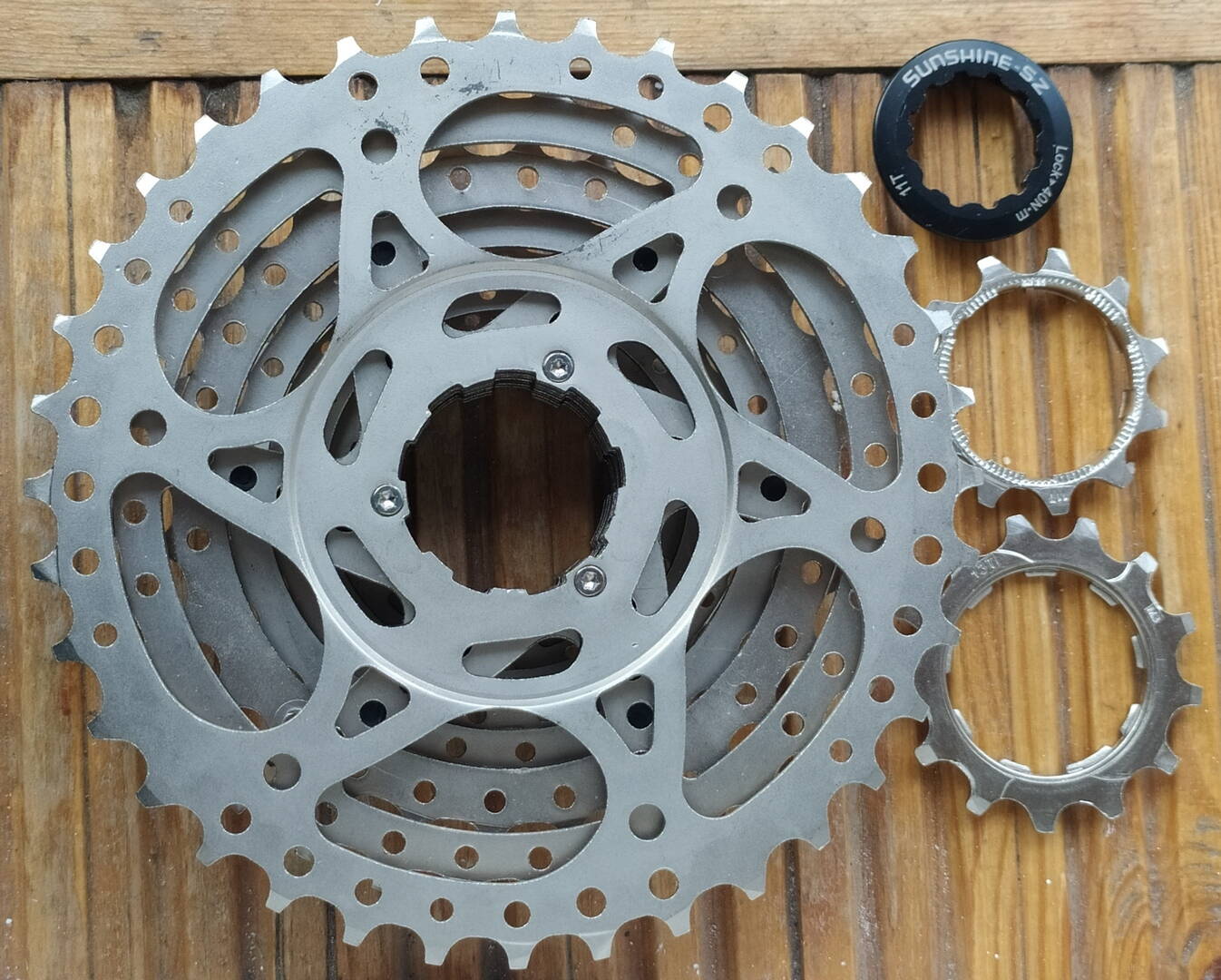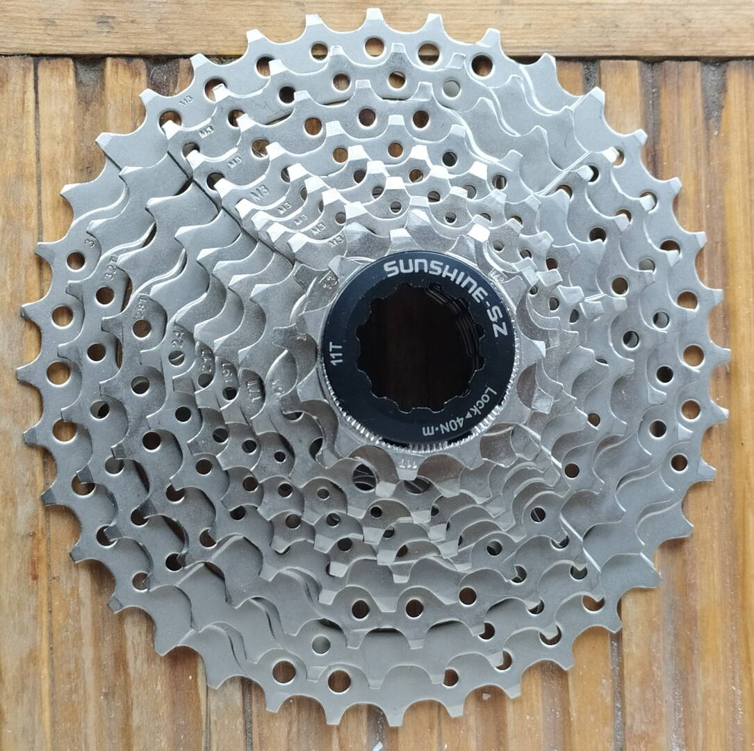 Новая кассета десятка уже достаточно известного китайского производителя SUNSHINE. При нынешних ценах и проблемах с поставками Shimano, вполне себе разумная альтернатива. Попробовал надфилем одну из звёзд царапнуть- не пластилин, детальней только личный опыт, но в интернете по износу хорошие отзывы.