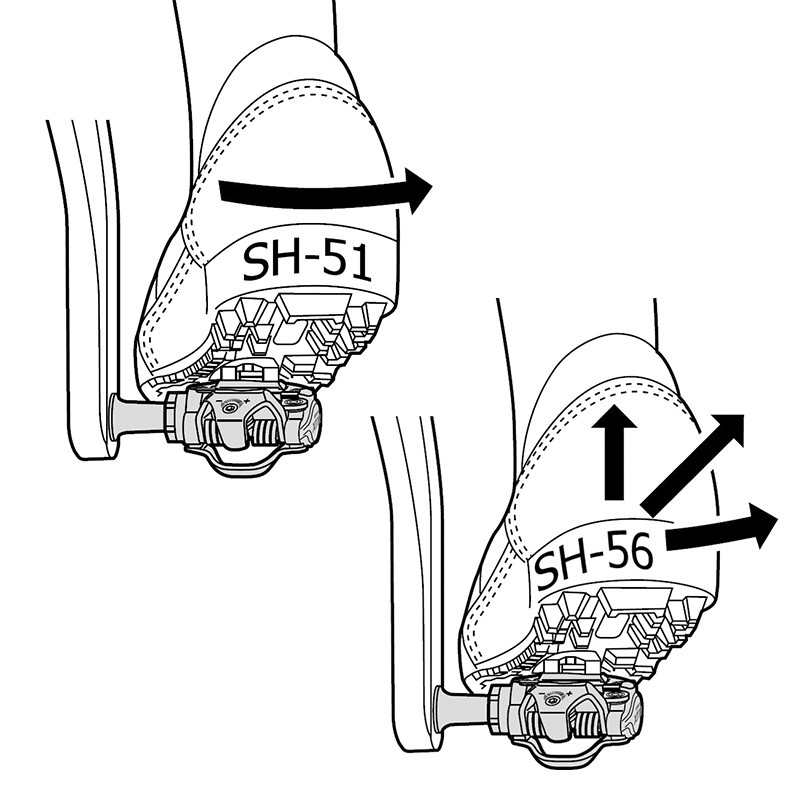Шипи мають люфт 4°, що дозволяє за потреби трохи змінити положення ноги при педалюванні.