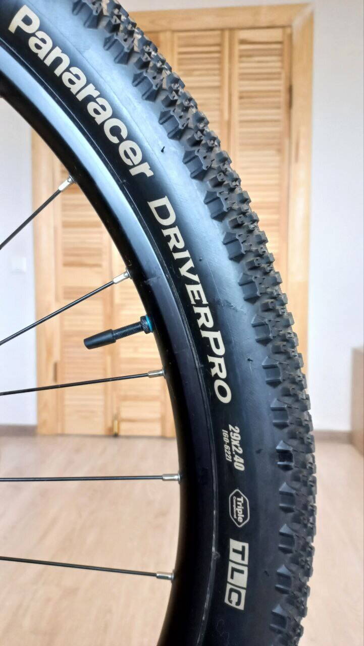 Безкамерні покришки Panaracer DriverPro в ідеальному стані, без порізів і мінімальним зносом протектора, стояли безкамерно (герметик milKit):