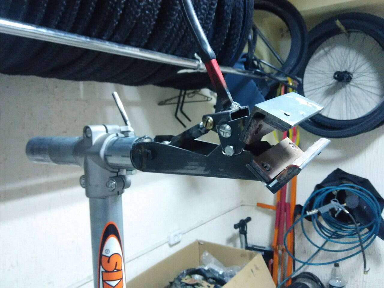 Комментарий к файлу: а это лапа с основой из круглой трубы. вариант близок к вот этому http://www.parktool.com/product/adjustable-linkage-clamp-100-3c?category=Clamps буржуи таки что-то знали когда проектировали свое.