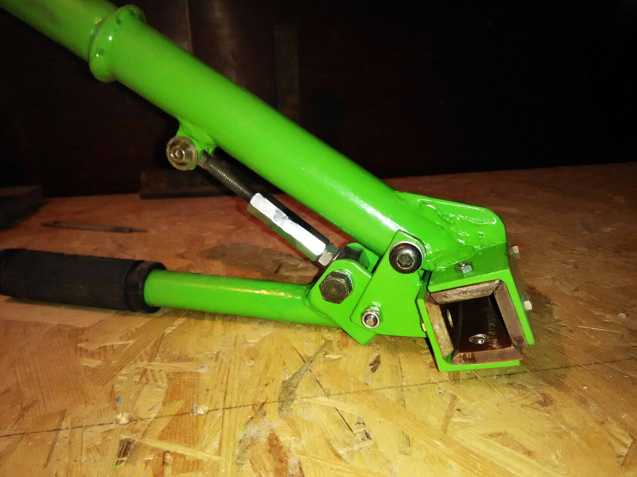 У П-образного профиля не достает одного ребра жесткости, от этого его и крутит. Если все же подвесить вел за верхнюю трубу переднего треугольника, то все норм, но работать-то приходится иначе. Выходом из положения стало добавление ребра. Пришлось доварить пластину. Так стало на много лучше – больше жесткости. Следует заметить, что толщина металла довольно посредственна по сравнению с формой профиля основания.