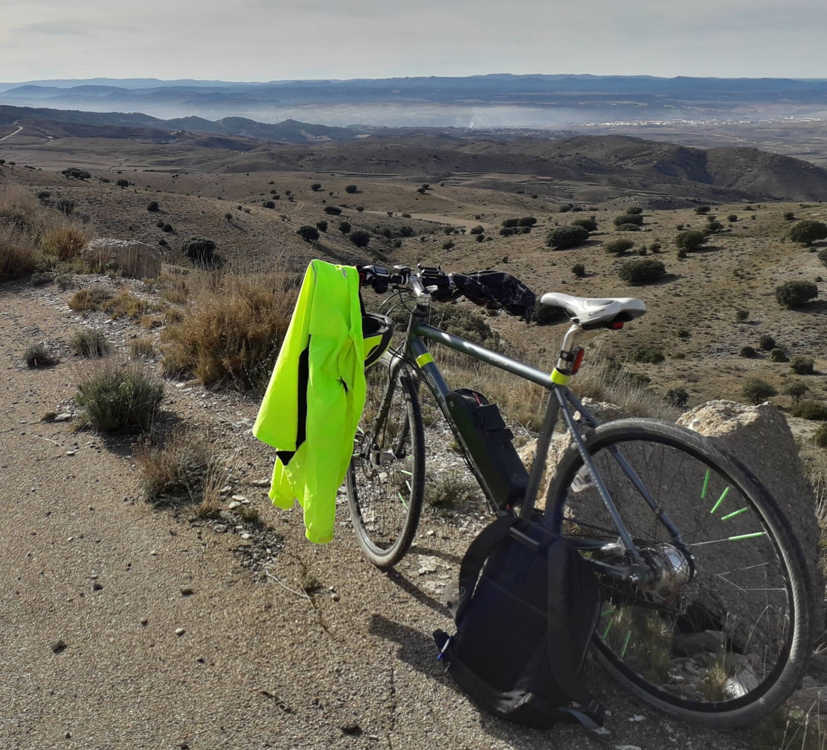 Один из шести сделанных мной е-велов, на котором я собственноножно сделал 8000км по горам за год. Фоточка с высоты 1,5км над уровнем моря.