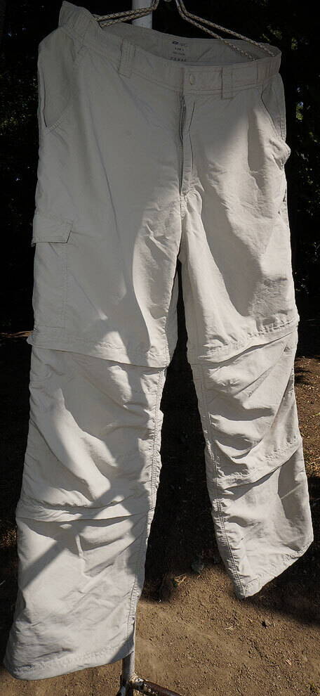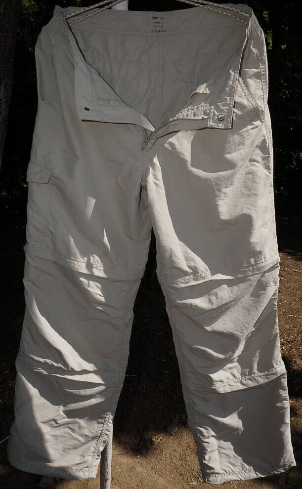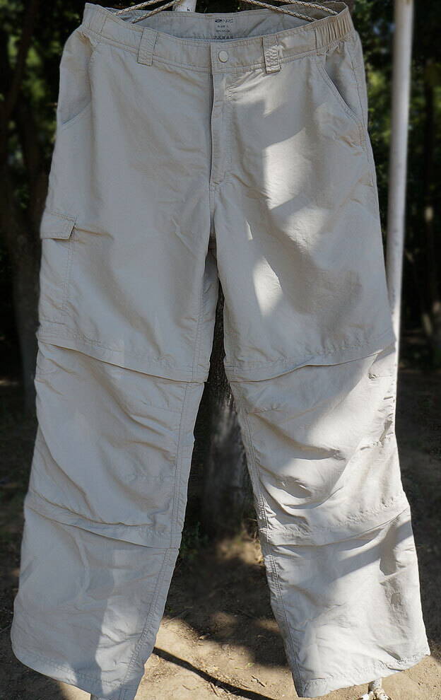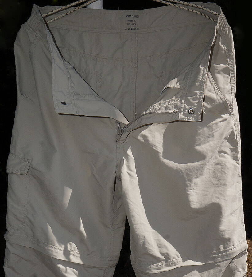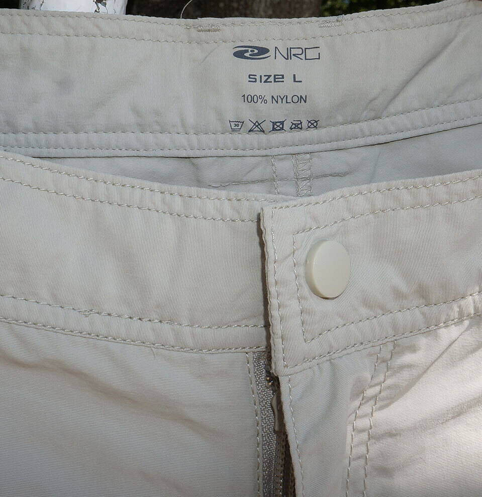 Брюки женские трекинговые трансформеры NRG. Цвет светло-серый ближе к белому. Штанины на молнии отстёгиваются в двух местах. Фактически это 3 в 1: длинные брюки, бриджи ( капри ) и шорты. Три кармана спереди и два кармана на липучках сзади. Внизу штанины вшит эластичный шнур.