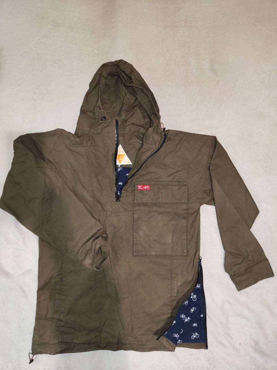 Продам фирменную вело ветровку на вид как новая размер Л воду не пропускает ,на подкладк, в рукавах резин, снизу слева молния для облегчения посадки на вел,есть разрыв под рукавом не сквозной при носке не видно даже. Высота 75 см ширина 57 см длина рукава по крою 57 см чистый размер Л .
