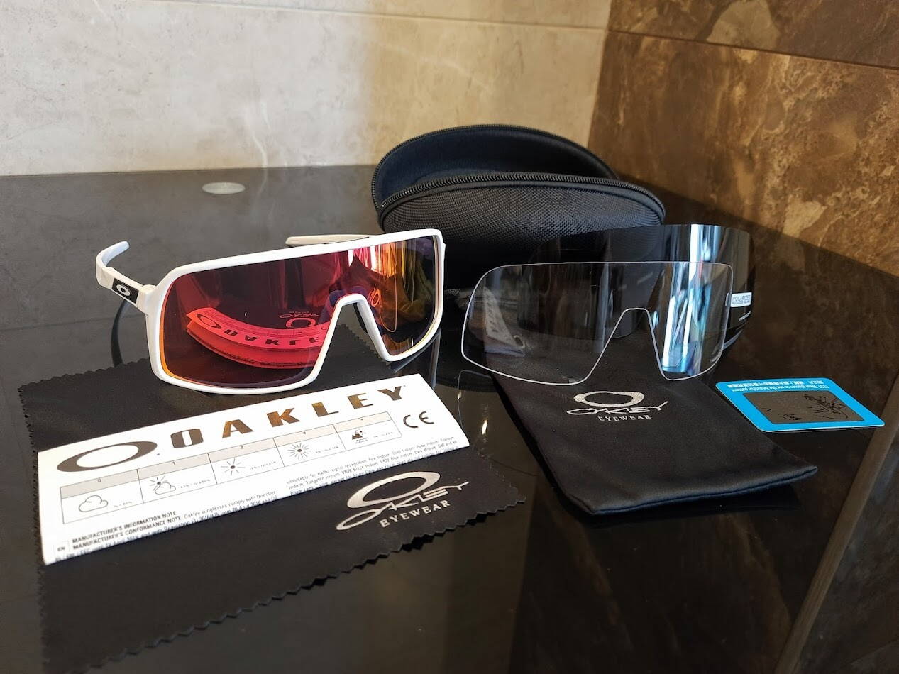 Очки продаются в комплекте с двумя сменными линзами, на плохую погоду и Polaroid, с жёстким чехлом для транспортировки, мягким мешочком для защиты линз и салфеткой для протирки от пыли и грязи