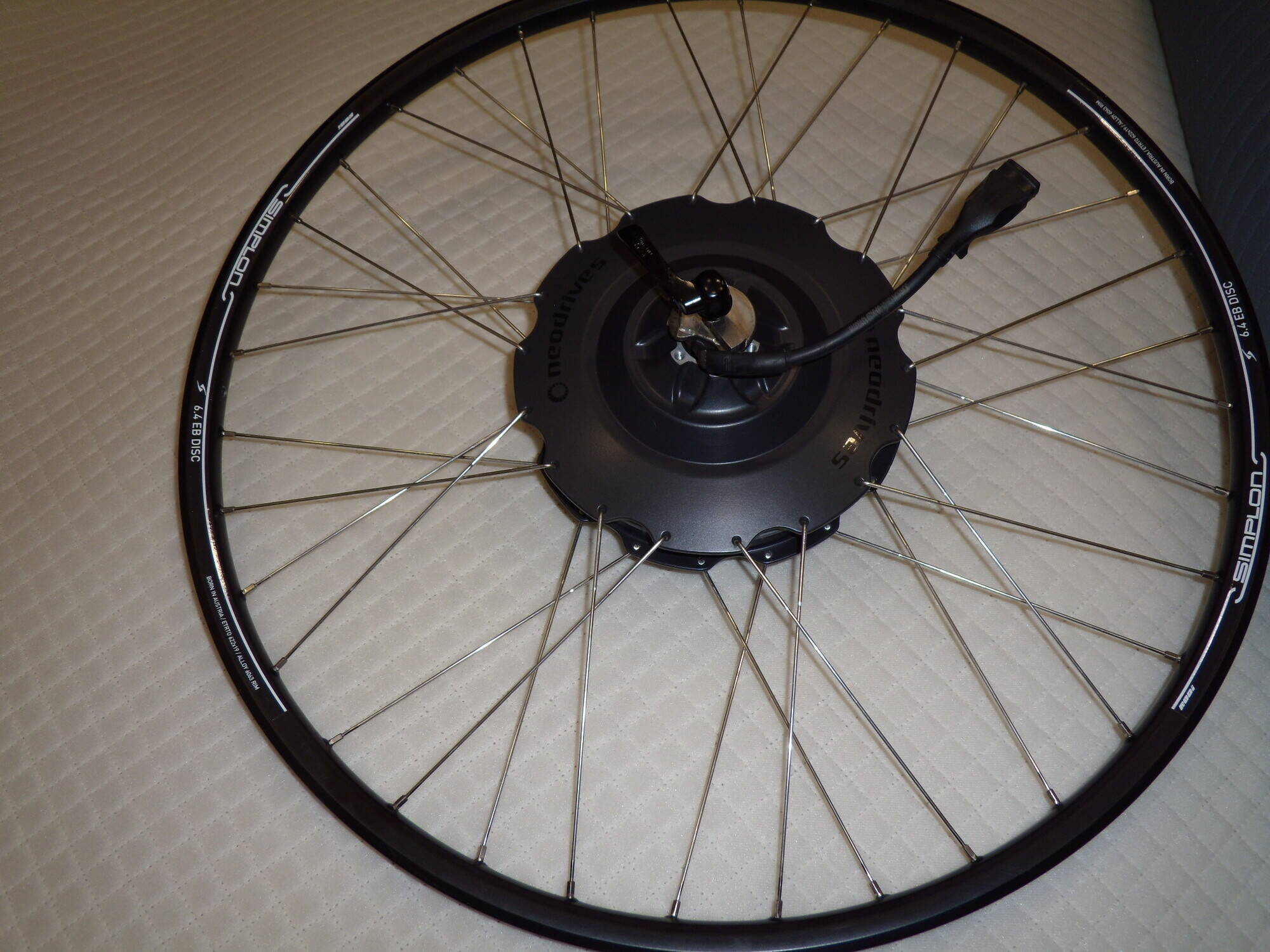 210 долл . Электро вилсет (Австрия) ,без пробега по Украине . Переднее и заднее колеса ,эксцентрики ,электропроводка,соединяющая мотор с батареей и на руль к органам управления . Simplon neodrives e-bike wheelset 28 "-29" .Сделано 7/2016 . Обода Simplon 8,3 disk , ETRTO 622x19 alloy ,обода и спицы созданы специально для повышенных нагрузок . Rims and spokes are specially designed for heavy loads. Передняя втулка динамо : Shimano DH-3D72 Disc Center Lock Dynamo Hub . Rear wheel with quick release mount 6-Bolt .Втулка задняя- электромотор MADE IN GERMANY : Neodrives motor enclosed, maintenance-free wheel hub motor, to IP64 standard only 4.36 kg total weight (without attachments), 2 stages recuperation high efficiency (80%), strong with 250 (650) W .Подходит под 10-ск и 9-ск кассеты.
