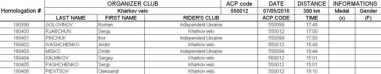 Заголовок сообщения: Re: Харьков, 07.05.2016, бревет 300 км