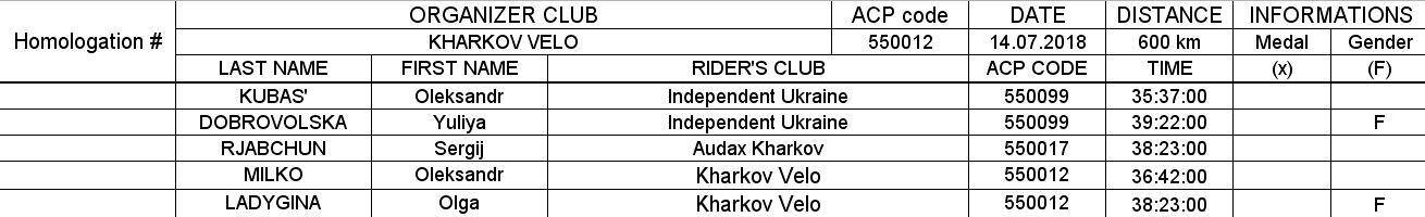 Заголовок сообщения: Re: Харьков, 14.07.2018, бревет 600 км