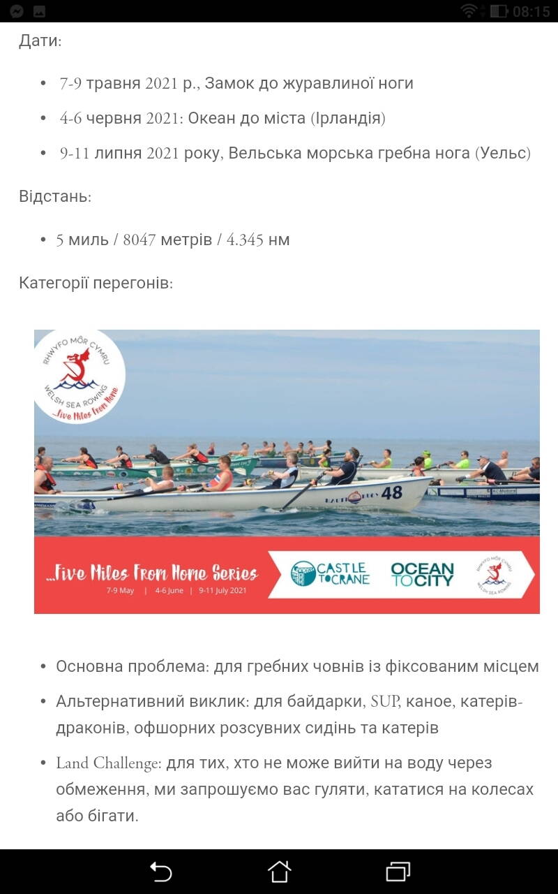 Потрібно на човні, каяку, каное чи SUP пройти 5 миль на своїй акваторії. Можна взяти участь в одній гонці або у всіх трьох. Кому цікаво- приєднуйтесь.