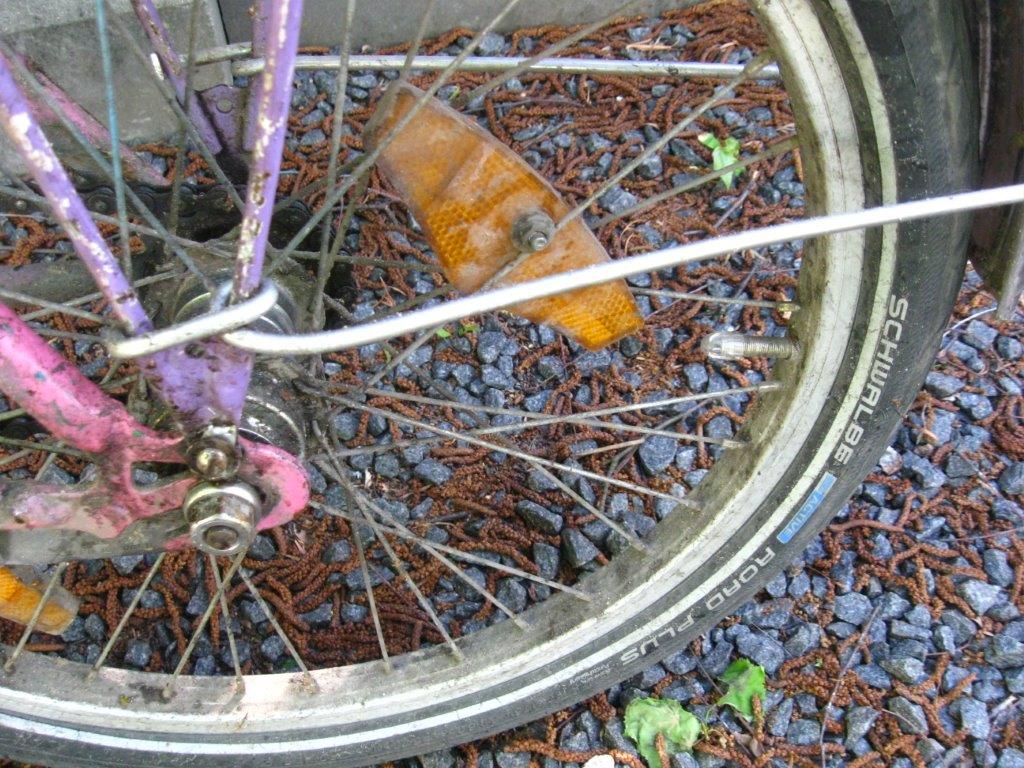 И довелось видеть буквально вмазанные в асфальт остатки некоего украино-подобного велосипеда, который прислонили к опоре в неудачном месте, где большегрузы поворачивают. Не заметили...