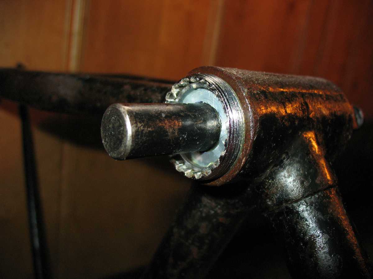 Следующий квест называется французская каретка. Обе чашки с правой резьбой М35. Можно было бы подыскать вторую левую чашку хвз и вкрутить справа, но проблема с шариками - за 650 км пробега шары с базара почернели и посыпались чешуёй, несмотря на то что шлифованный вал и чашки в порядке. "Доставать" особо качественные шарики и потом проверять не убились-ли и они мне лениво, поэтому купил картридж под клин. И там же на рынке повезло добыть бэушную левую чашку под картридж. Под клин только потому что у меня есть три системы на клиньях которые не выкидывать же, а так был бы, само собой, квадрат.