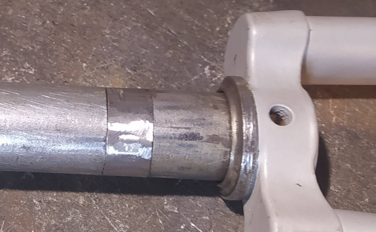 Возникла идея ее удлинить, разрезать шток внизу, в 5 см от короны, и вставить внутрь штока кусочек трубки ф22 мм, а чтобы не было ступеньки между двумя кусками штока, между ними поставить кусочек трубы от старого штока ф25 мм.
