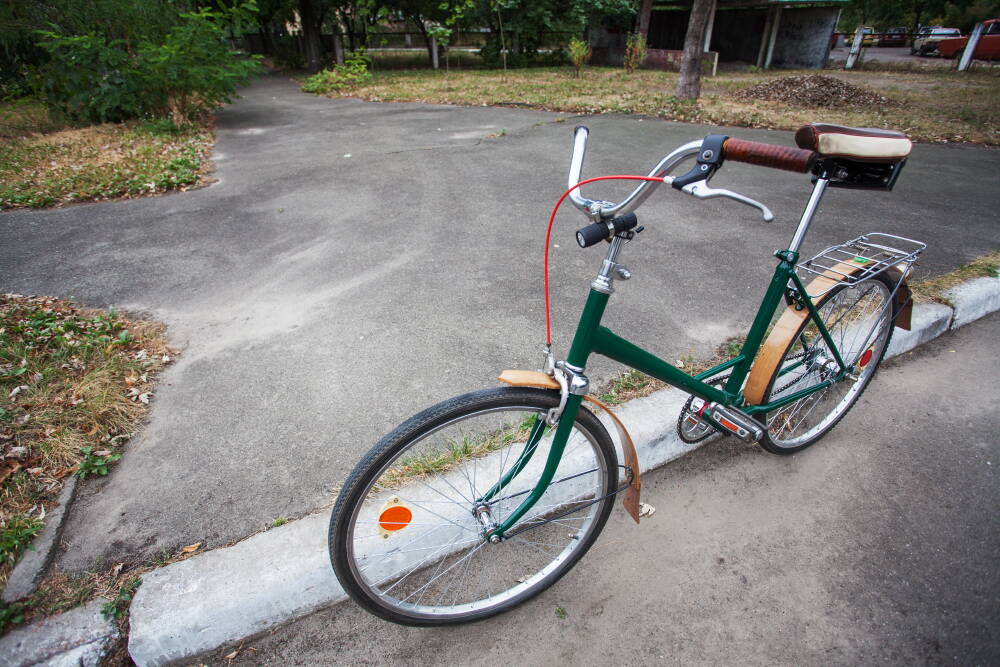 Велосипед окрашен порошком с порошковым лаком, цвет RAL6005. Грипсы - киперная лента под шеллаком.
