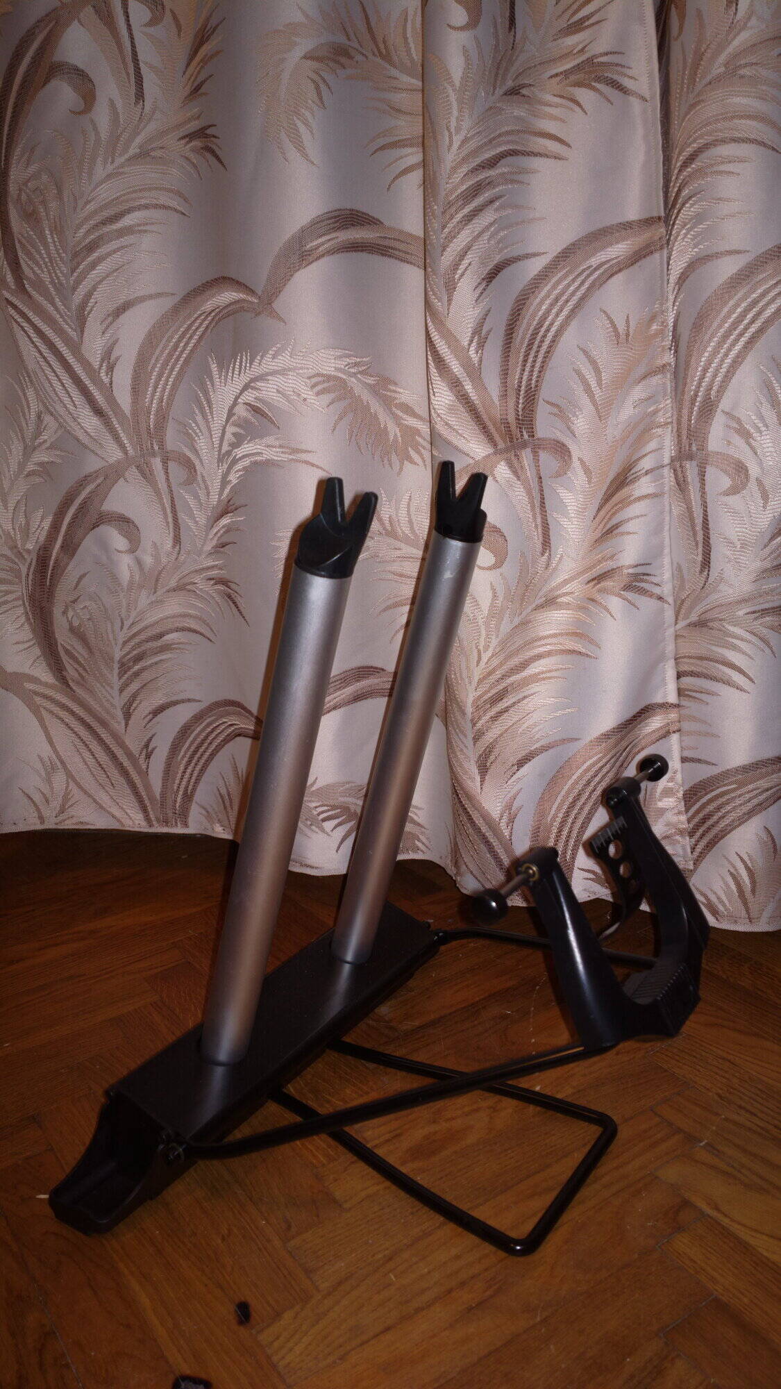 Комментарий к файлу: А вот и сам станок - ничего особенного, дешево и сердито. Ножки раздвигаются, нижняя часть подстраивается под размер колеса, можно смотреть осевое биение с обеих сторон, а также радиальное. Единственное, что не понравилось - кончики ножек пластиковые, а так все хорошо - все остальное их металла, массивное основание и простота конструкции, хотя что там сложного, все правили колеса в рамах и вилках, биение мерили спичками и зубочистками и ничего :)