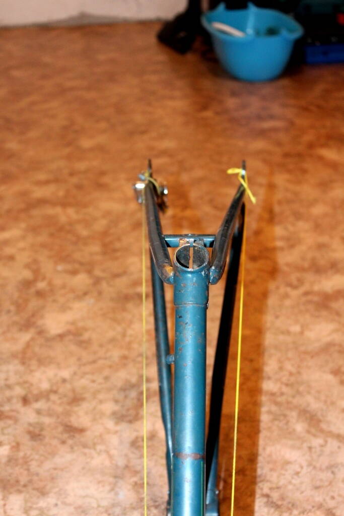 Иногда и руками получается задние перья ровнять. Но не всегда. Кстати, посмотрел-подумал.. это может и не выправиться. Из-за несимметричности припайки верхних перьев к подседельному узлу. Но попробовать стОит. И ещё там желательно контролировать расстояние от каретки до задней оси. Хотябы зацепив рулетку за край кареточного стакагна и измерив расстояние до конца дропа с двух сторон.