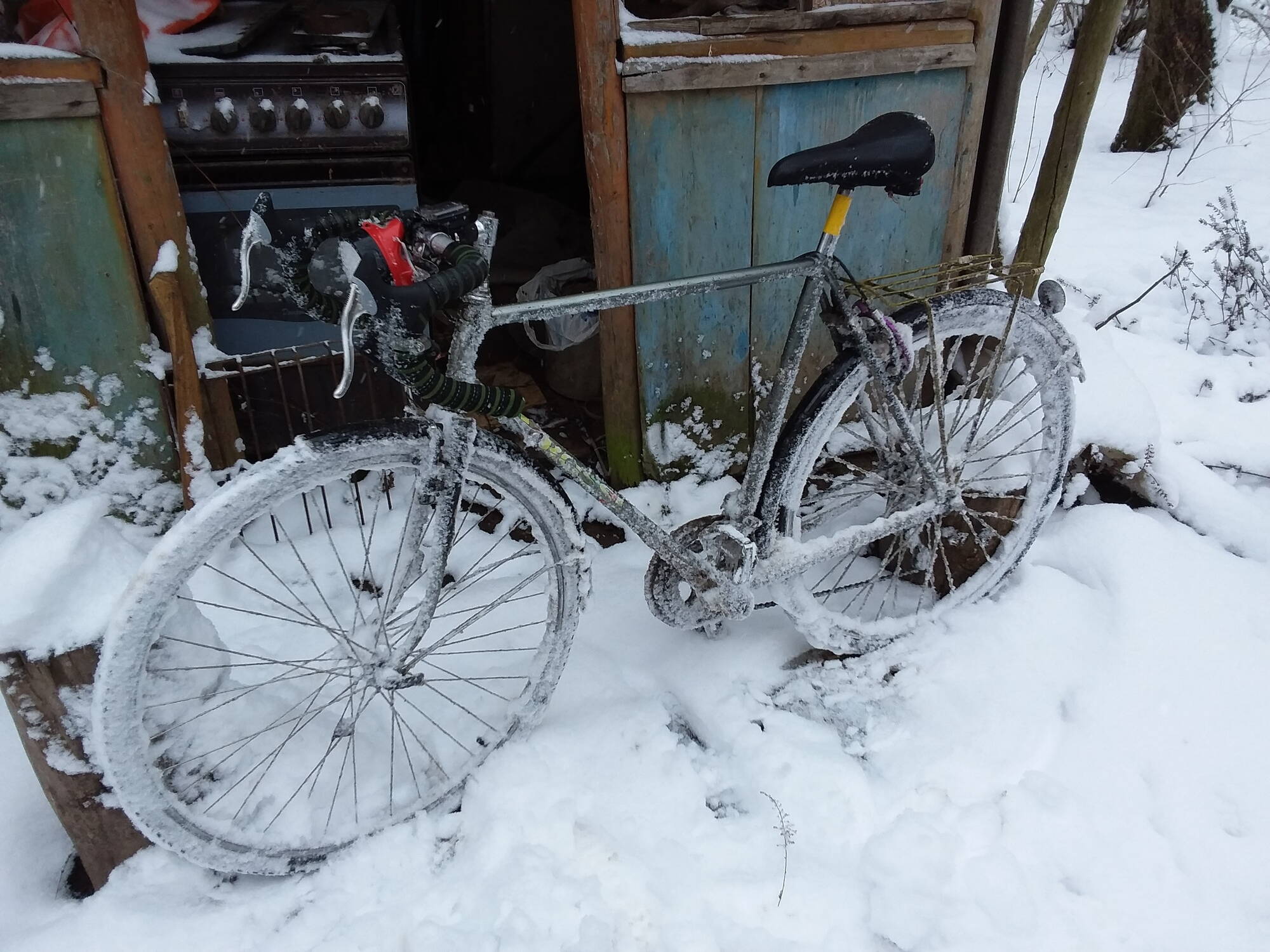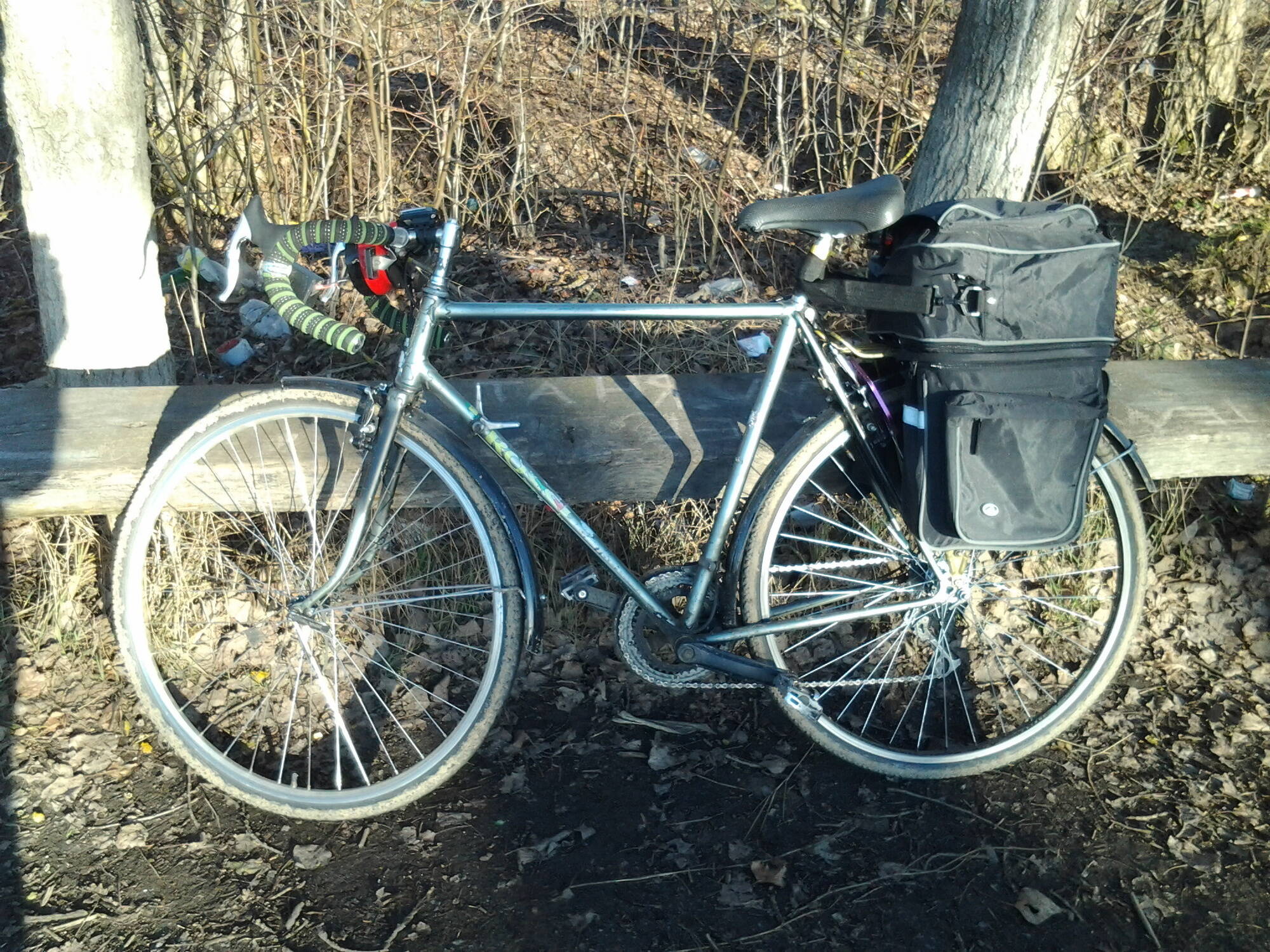 Замінені колеса, переклюки, крила, педалі на напівконтактні, поставив дуали Claris 3x8 після зимової поїздки, коли не міг переключити передачі на слизькій дорозі вверх. Зараз ще стоїть система Ultegra 36-46t 170mm