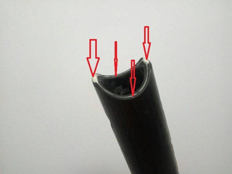 Больше половины трубок на конце возле замка прослоены стеклотканью. В этом месте примерно треть стекла, остальное уголь. Стеклопластик лучше карбона противостоит сминанию и скалыванию.