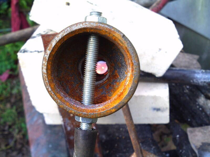 Подсмотрел её на чипмейкере, но это скорее горелка для любительских литейных работ. Дури много, но температуру всё равно не очень нагоняет. Сделал её давно (до покупки поста газосварщика), попробовал и забросил. Но на разборку рам уходит очень много кислорода (да и на сборку тоже), а возить его тяжело - далеко и баллон у меня 7 литров всего. Вот в помощь и сделал. В пособии по ремонту велосипедов упоминается распайка и пайка в кузнечном горне - думал типа газовый аналог замутить.