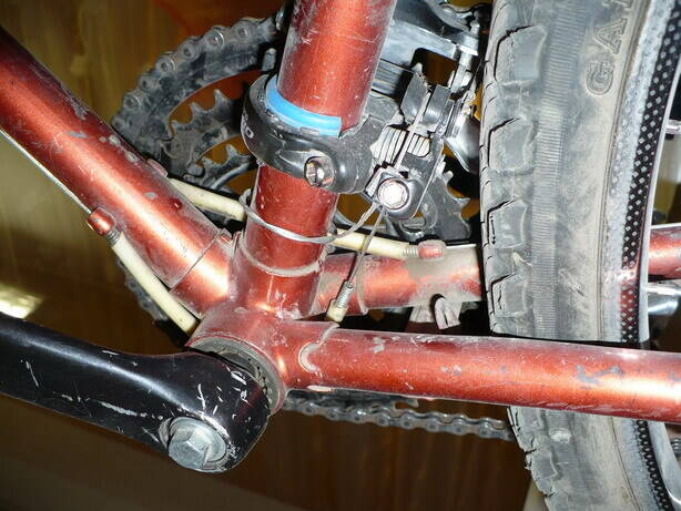 Я так понял, что у Iari вопрос о том, куда упереть рубашку троса, которая одним концом упирается в заднюю сторону нижней бонки на косой трубе, так как на подсидельной трубе бонок нет.