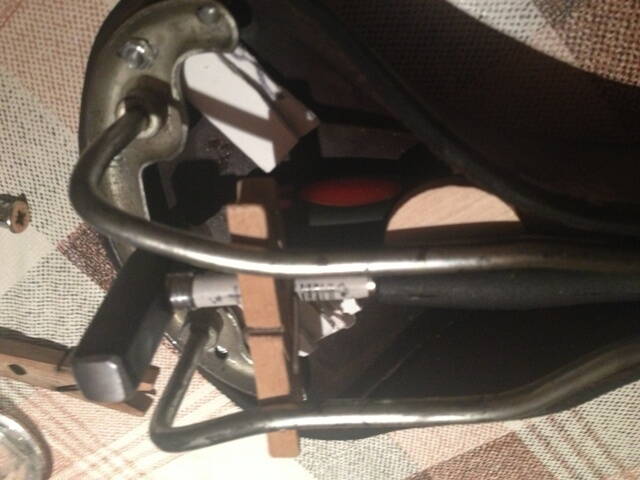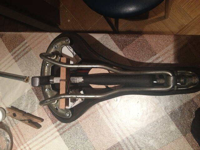 У меня под рукой доски не нашлось, привинтил к разделочной доске. Конечно получил люлей, зато седло почти "под линеечку".