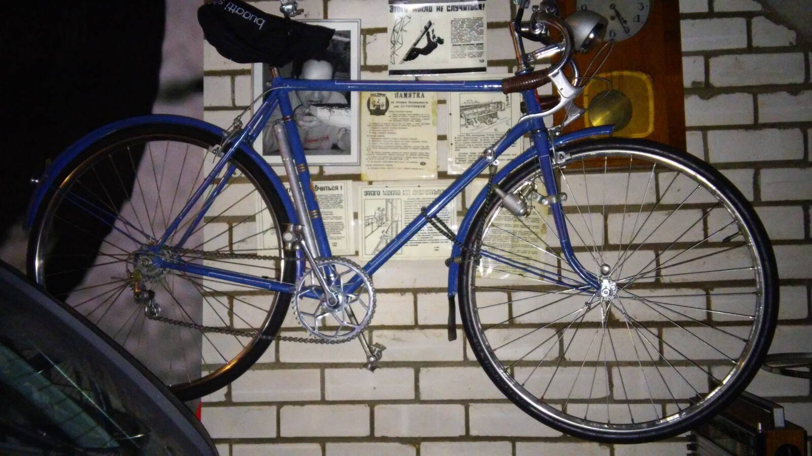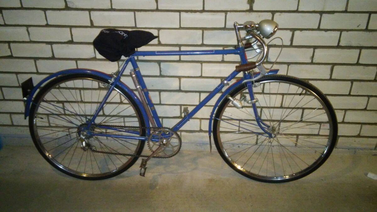 Работы - полная разборка, чистка, дефектовка, замена подшипника передней оси, замена обеих камер, тросика переключения, переспицовка переднего колеса на спицах ХВЗ, окраска переднего крыла и перемычки рамы с нанесением полосок и цировок (совместно с уважаемым Владиславом, в смысле он делал, а я .....помогал:), изготовление брызговика. Остальное оригинал.