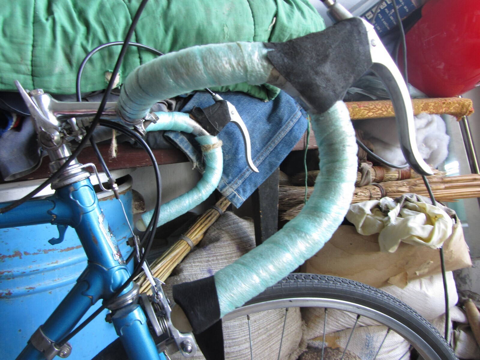 Пойдём дальше! Мой руль. На Туристе я попробовал обмотку из кожи старого плаща.Вроде как нормально, но нельзя останавливаться на достигнутом. На этом решил пойти дальше, под кожу решил попробовать подложку для ламината, оставшуюся после ремонта. Руль обмазал каким-то клеем БФ, лет 30 стоял, для этих целей как раз. Плотненько обмотал, а поверх уже кожей.В результате получился идеальный руль, вполне жёсткий с хорошим зацепом, но вместе с тем гораздо лучше поглощающим вибрации, чем просто голая кожа. Может с хорошей обмоткой было бы ещё лучше, но это хорошие деньги, а здесь всё бесплатно.