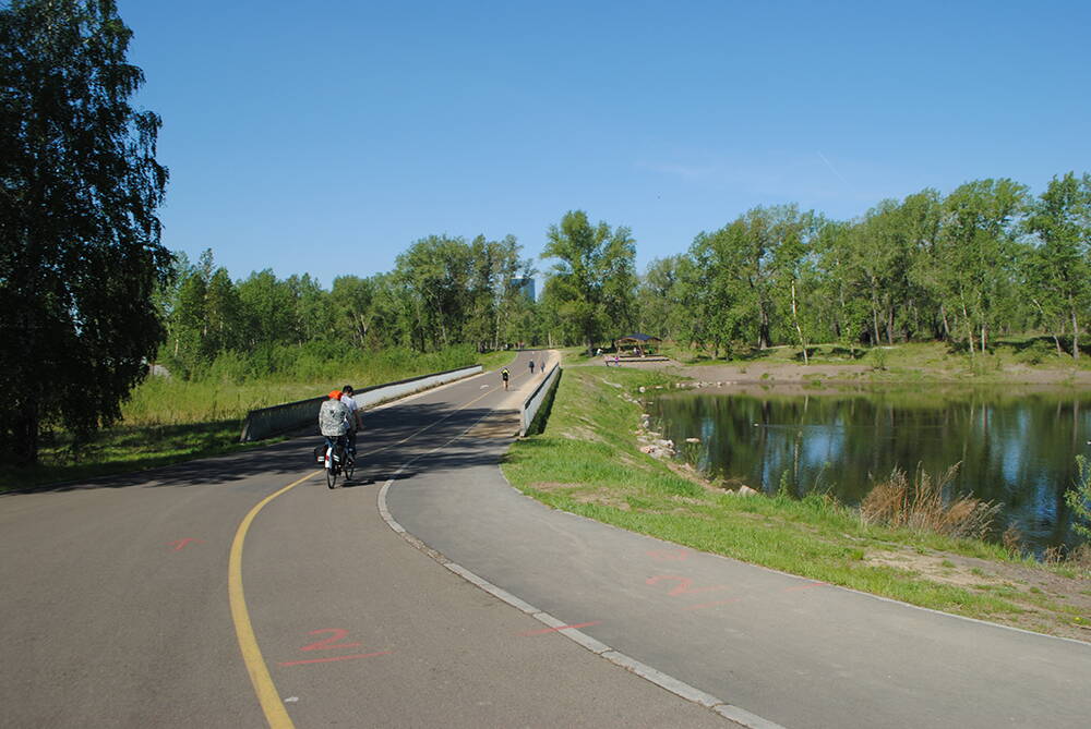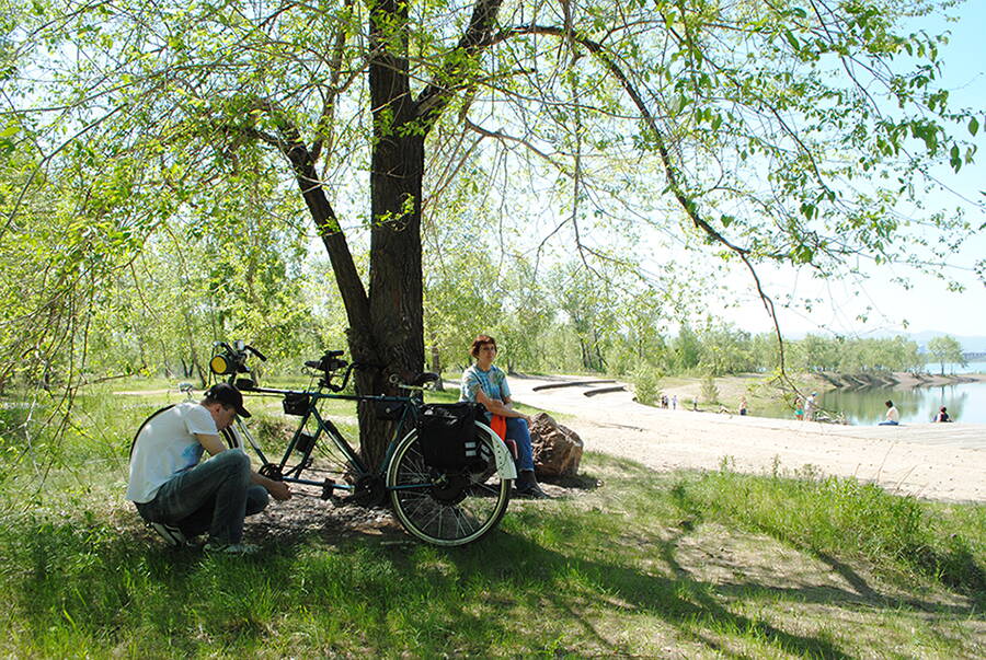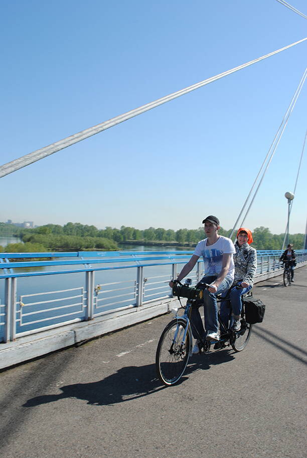 И вновь на связи Красноярск ! Тандем впервые после новогодней ночи пощупал шинами уже сухой,прогретый,летний асфальт. В воскресенье 28 мая состоялся первый выезд и сразу - на велопарад, уже второй по счету, который в отличии от предыдущего порадовал отличной погодой ! Компанию составила мама, которая до этого дня ни разу не ездила на велосипеде ! Общий пробег всего 25 км , но для нее это большое событие, можно сказать путешествие ! Получили море позитива, а также приз за самое необычное транспортное средство. Самодельный тандем творит чудеса ! Ну и по традиции - немного фото ...
