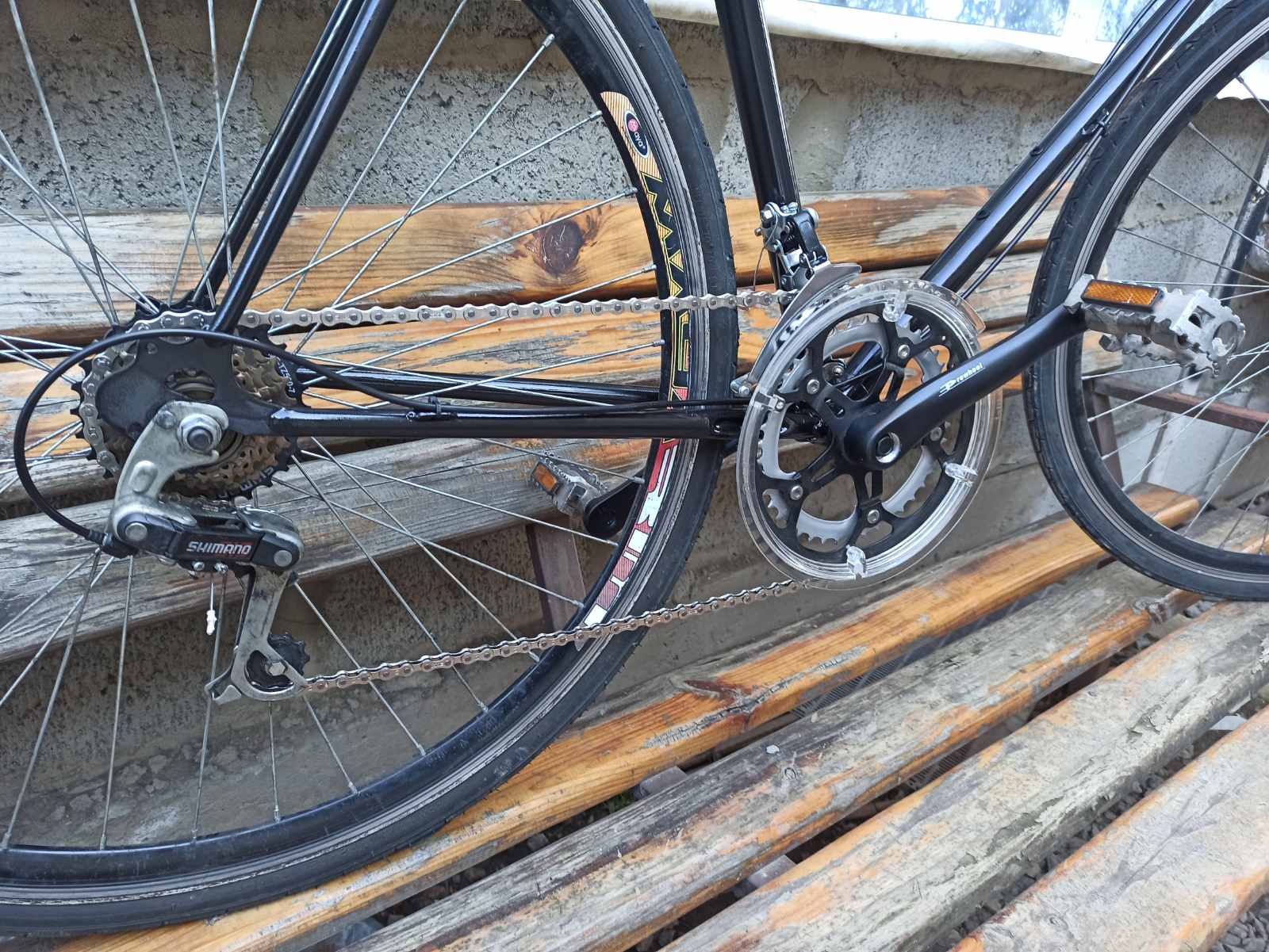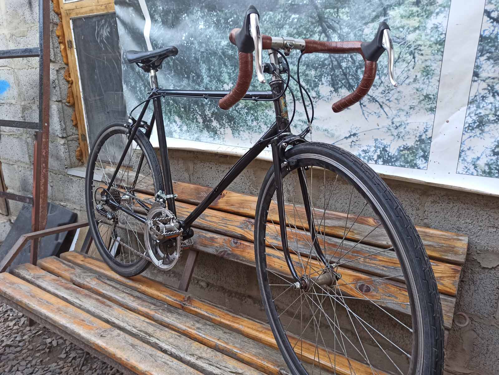 Итак итог таков: Колеса с резиной, ручки торм, тормоза, зад перекид, седло руль\вынос, педали- "сток". то что осталось от хозяина. Манетки, тросики\рубахи, покраска, лак, бонки, трассы,пер.перекид, шатуны, каретка,трещетка, цепь- мои. Обмотку привез хозяин. вел получился очень накатистый. что впрочем и стоило ожидать от 541го. Манетка четко переключает по индексам! честно я доволен. чуток меня рулевая задрочила. ну хавэзэ жи! как без этого. в остальном норма. Сделали тестю подарок. Теперь наклейки и как новый. :smile: