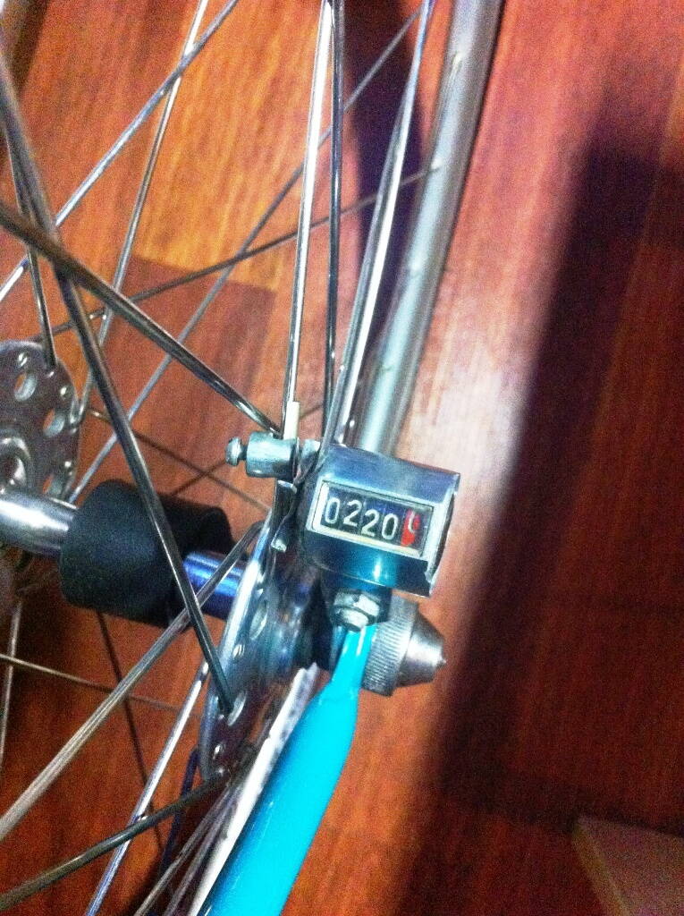 Отключите счётчик, а подключите, когда примерно 220 км намотаете - всего и делов. Новые счётчики (три шт), которые я отматывал дрелью, не выбрасываю... Вдруг на базаре задёшево головка попадётся без крепления и хомутика на спицу. Но только с третьего понял, что не бракованые попались, а отмотка тому виной...